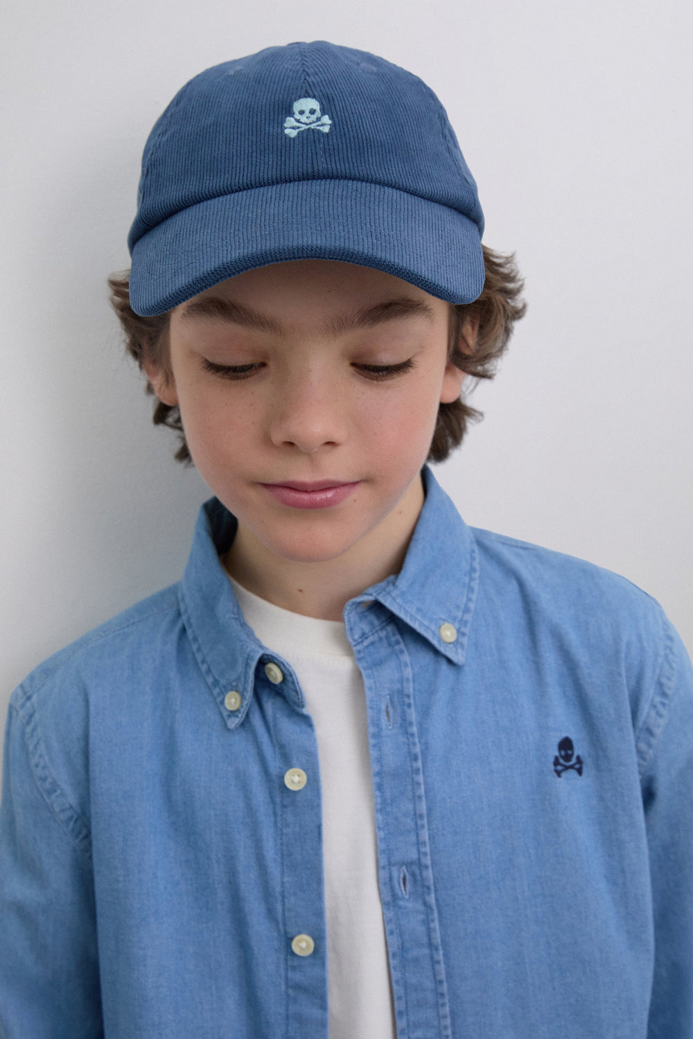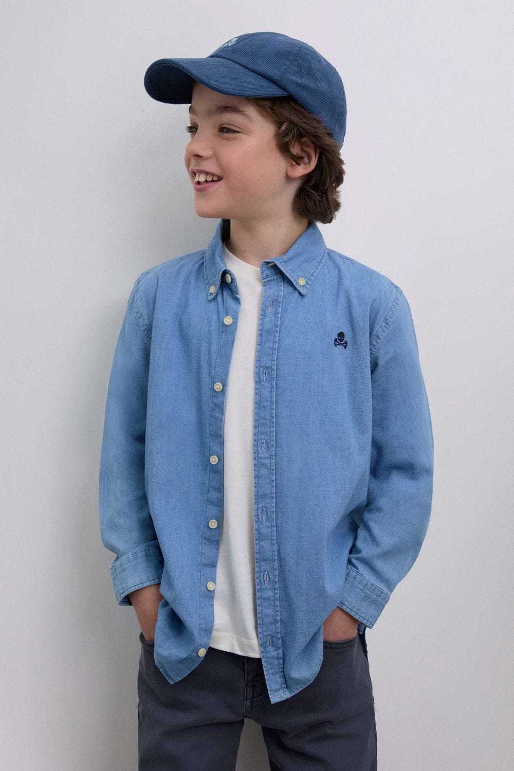 Oxford shirt made of BCI cotton. Denim. Regular Fit. Classic collar and button fastening. Long sleeves with buttoned cuffs. Embroidered contrast skull on the chest.