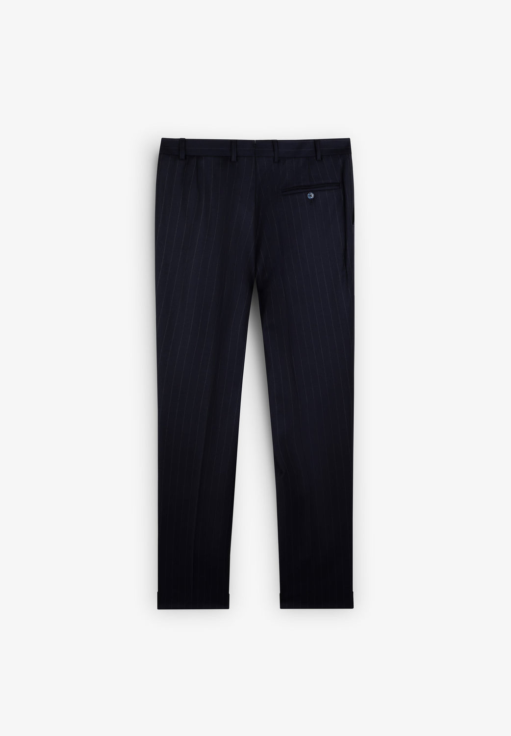 Trousers made of 100% Italian wool. Fastens with concealed zip, hook-and-eye fastening and buttoned placket. Two side pockets. Buttoned buttonhole pockets at the back. Made in Portugal.