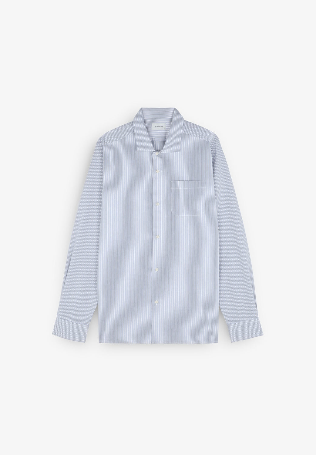 Shirt made of 100% BCI cotton. Long sleeves. Stripe print. Chest pocket. Contrast embroidered skull detail on the cuff.