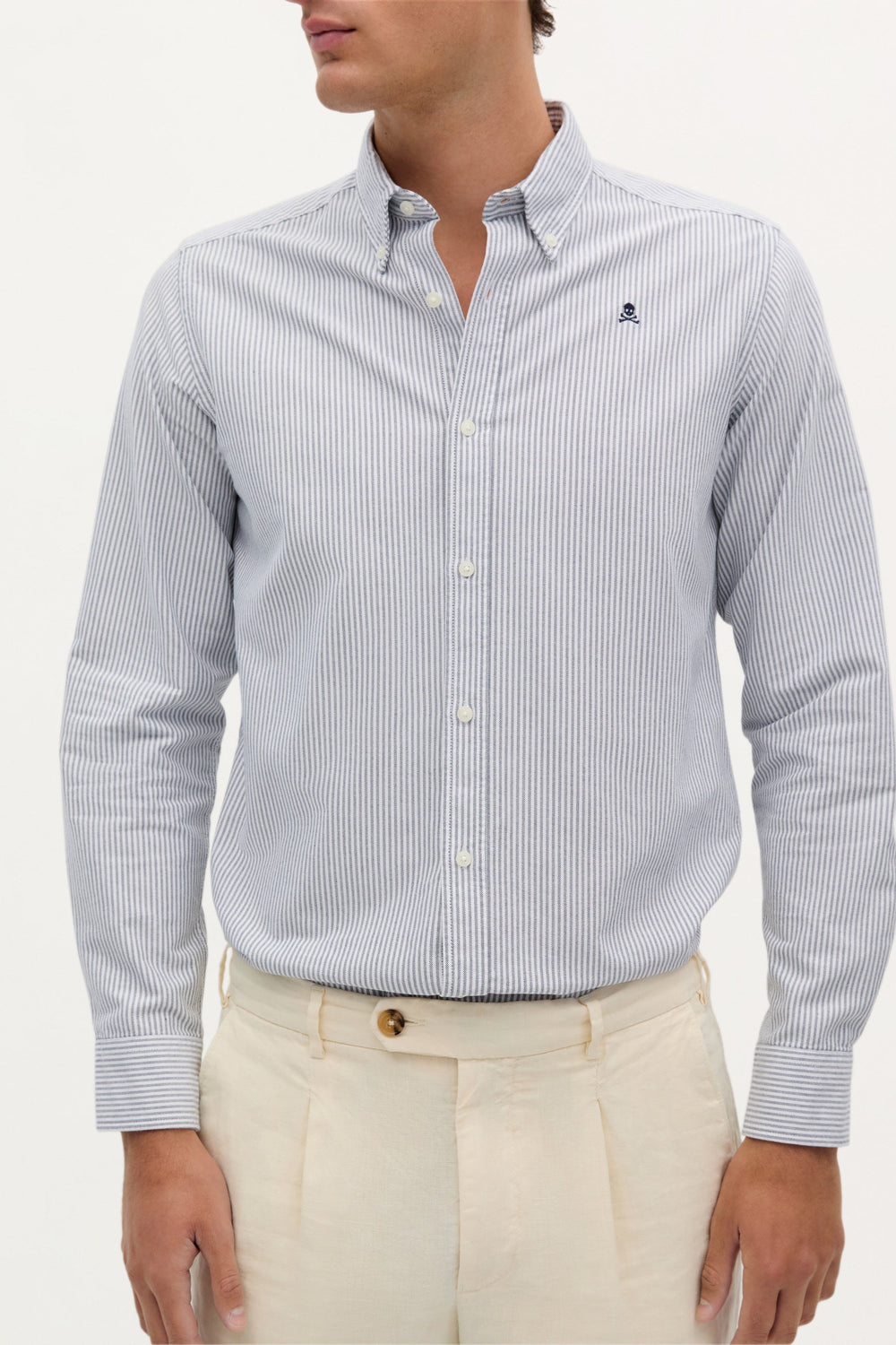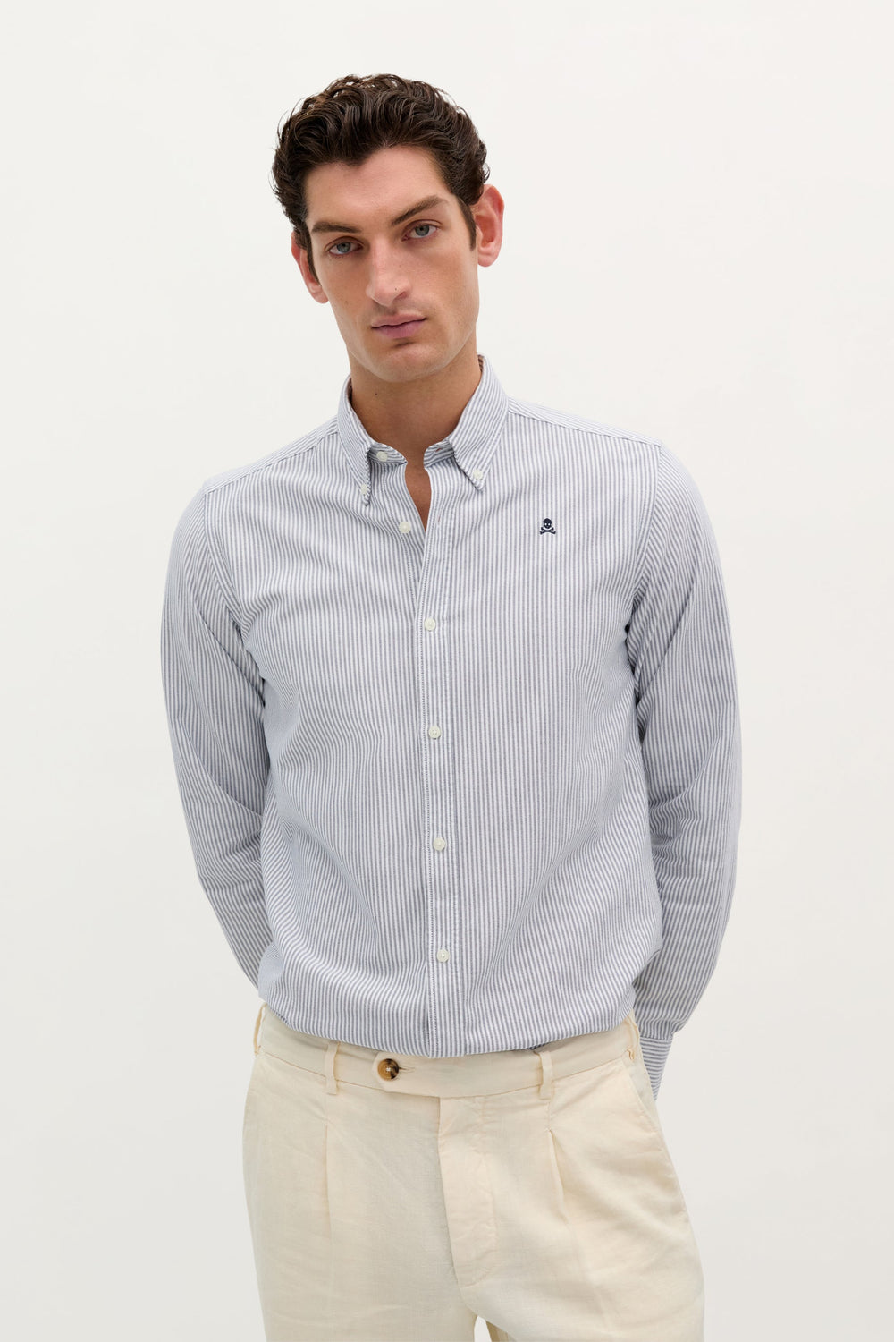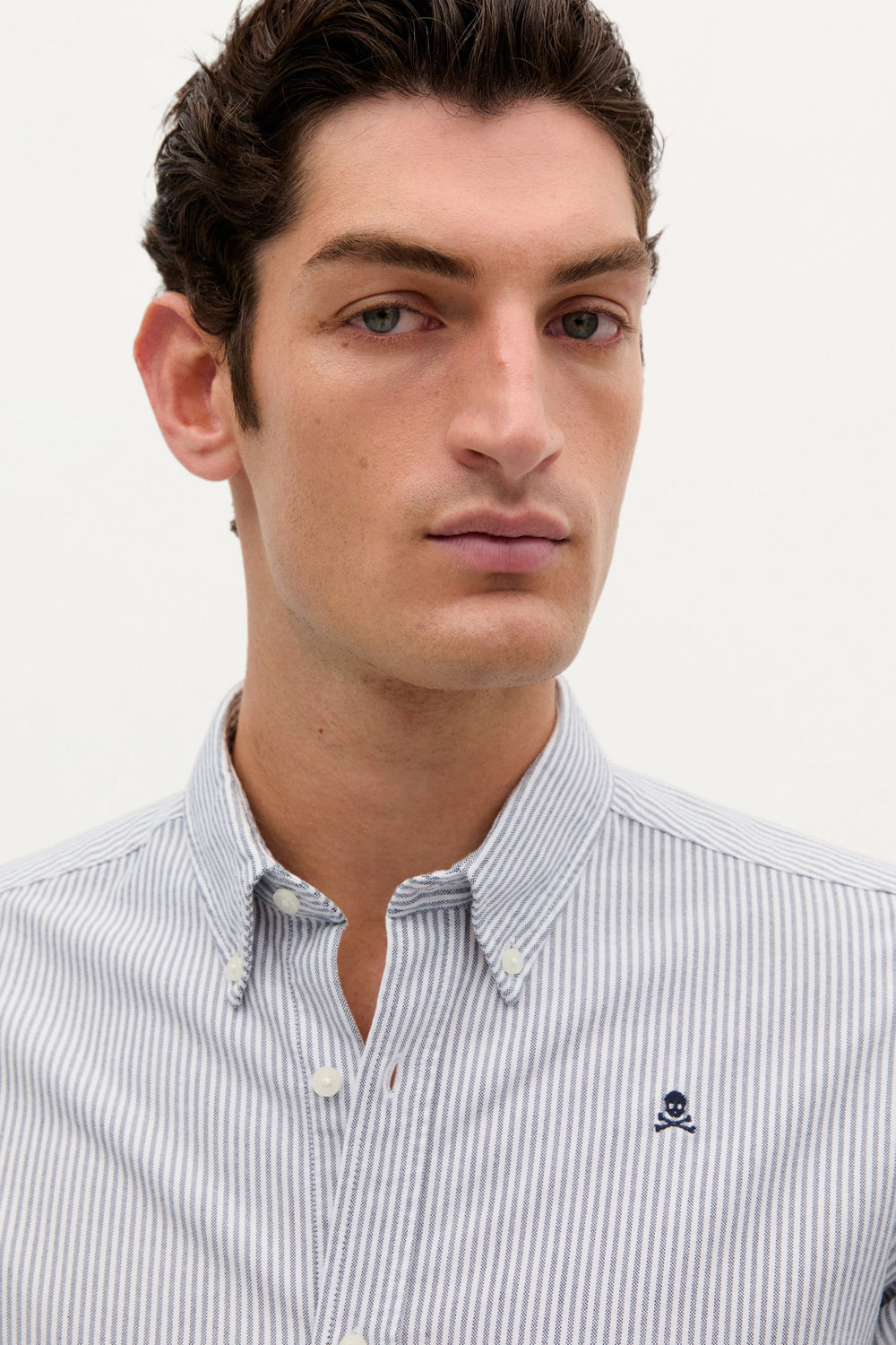 Striped Oxford shirt with a regular fit, button-down collar and front button fastening. Long sleeves and a contrast skull detail on the chest.