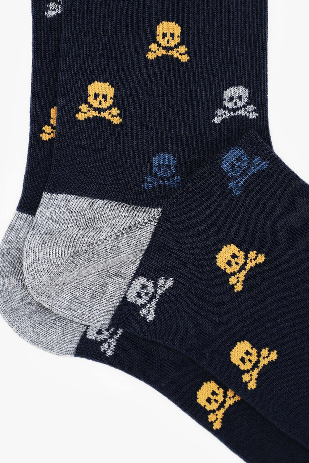 Calcetines con print de calaveras all over confeccionados en tejido de algodón elásticos. Caña media.