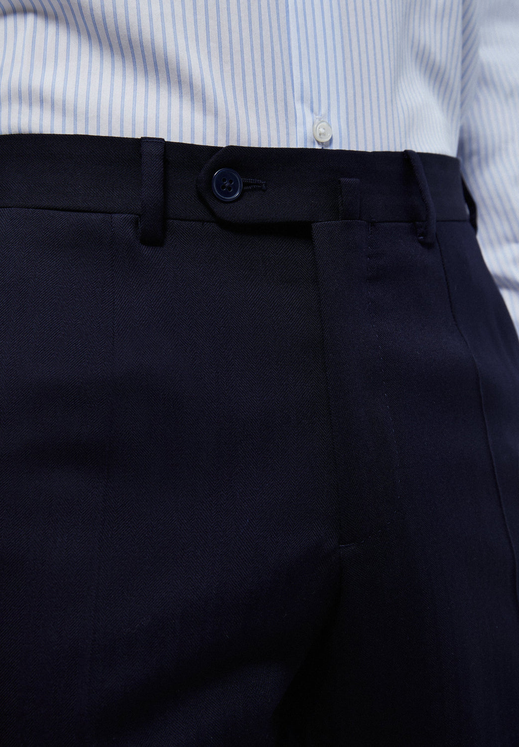 - Straight fit trousers with an extended button-up fastening and zip fly. Simple hem without turn-up