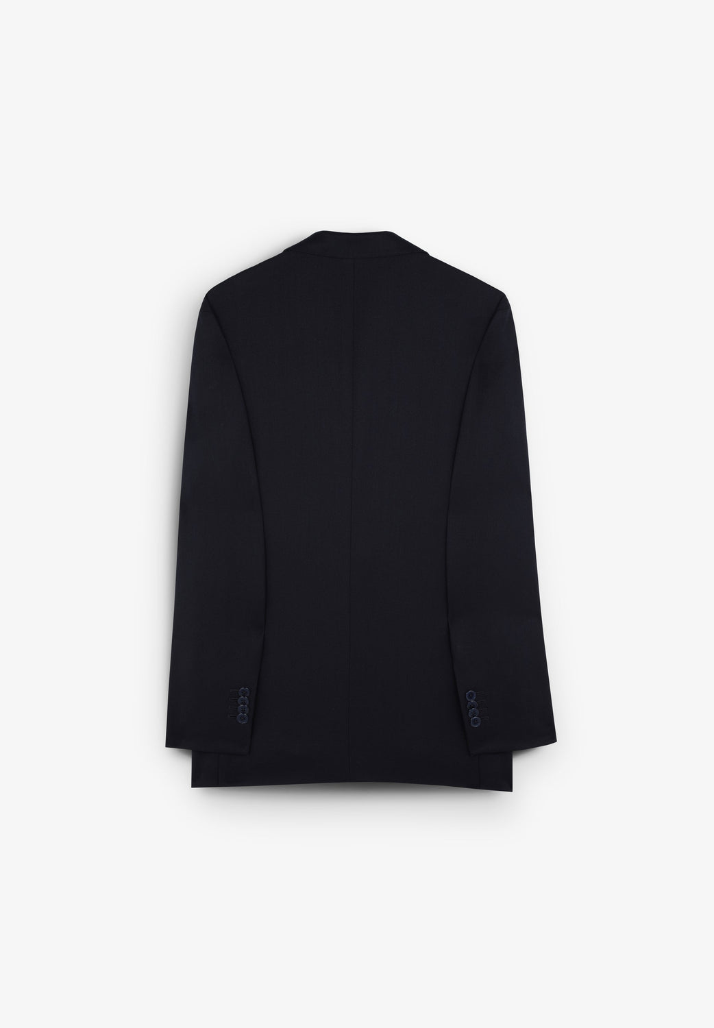 - Blazer with notched lapel with rounded tip, button fastening and flap pockets and ticket pocket. Sleeve with structured shoulder pads featuring practicable eyelets