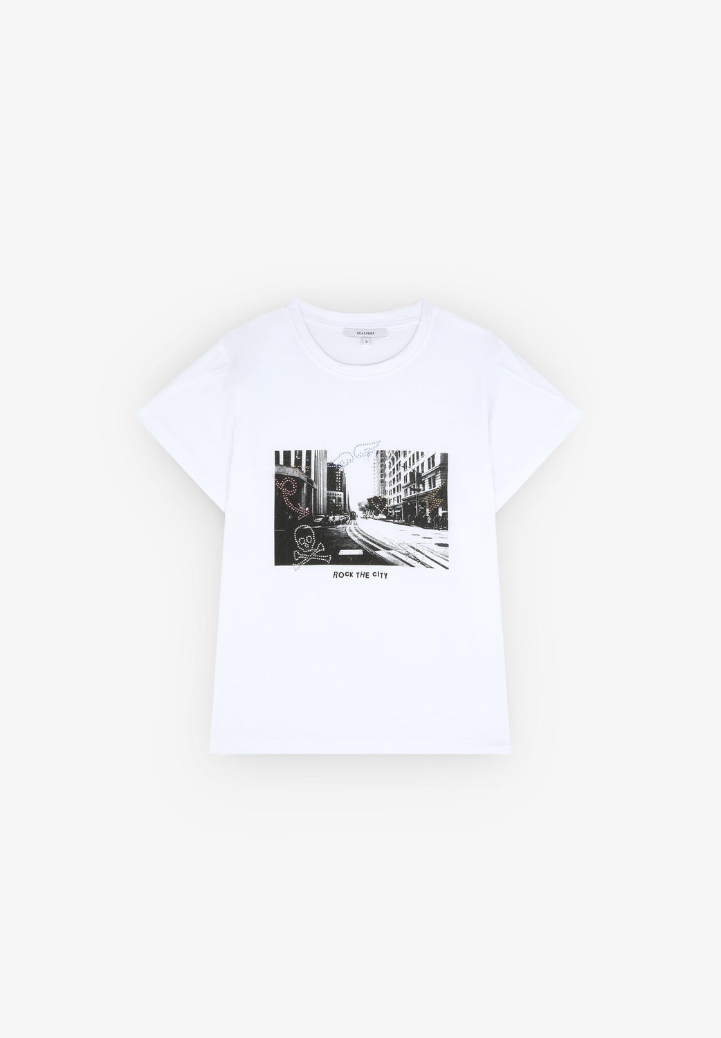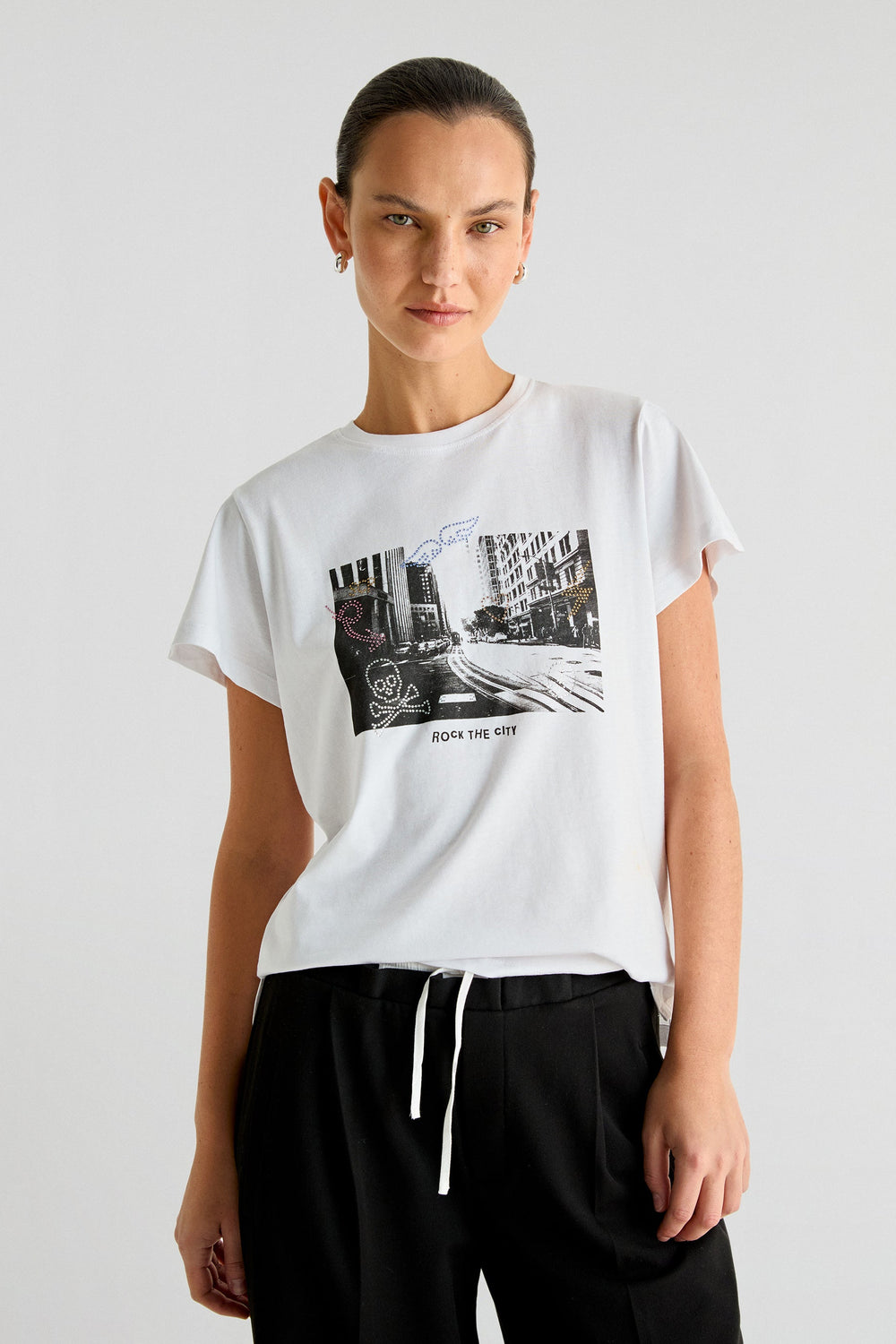 T-shirt with a photo print made of 100% BCI cotton. Regular fit, round neck and short sleeves. Crystal details.