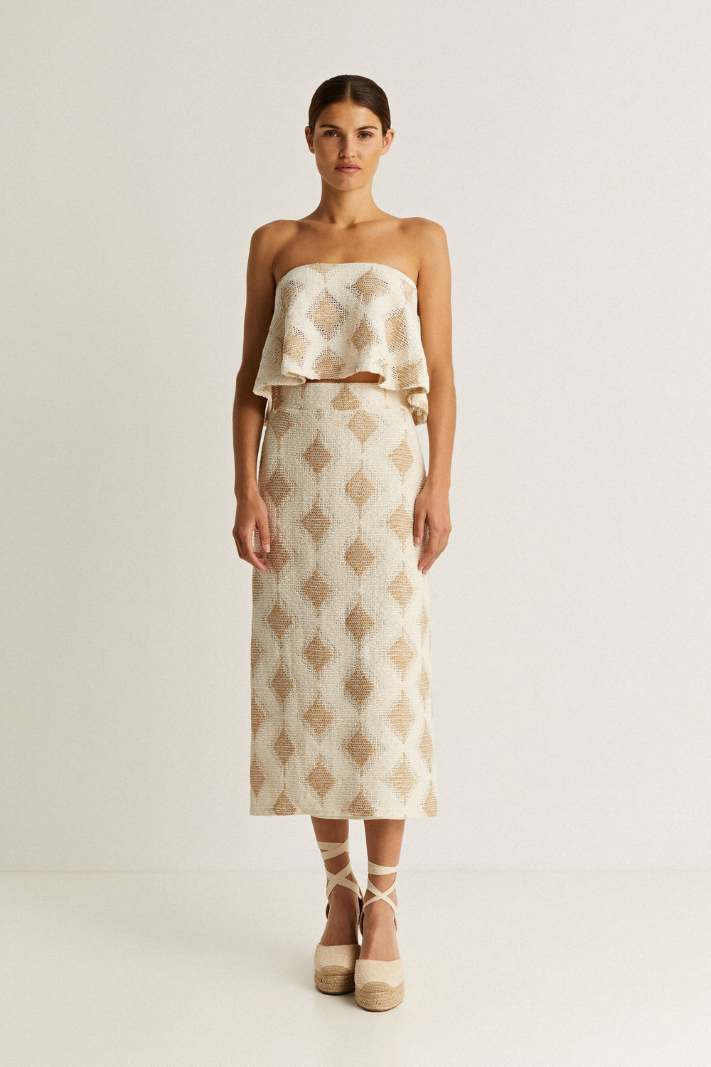 DIAMOND TEXTURED WEAVE KNIT MIDI SKIRT