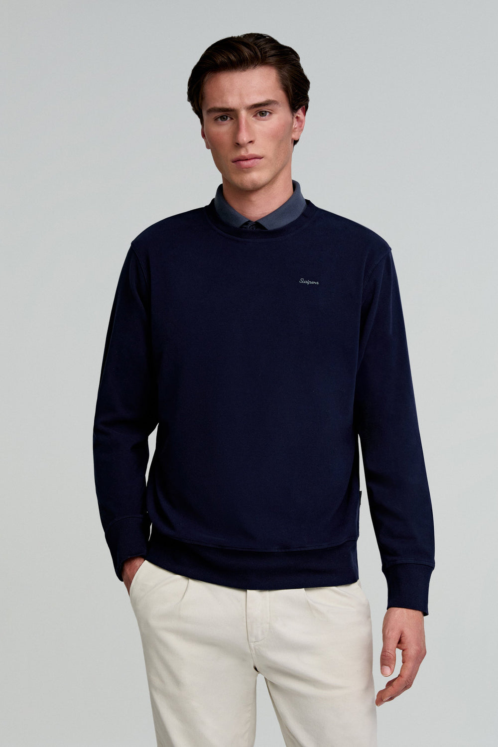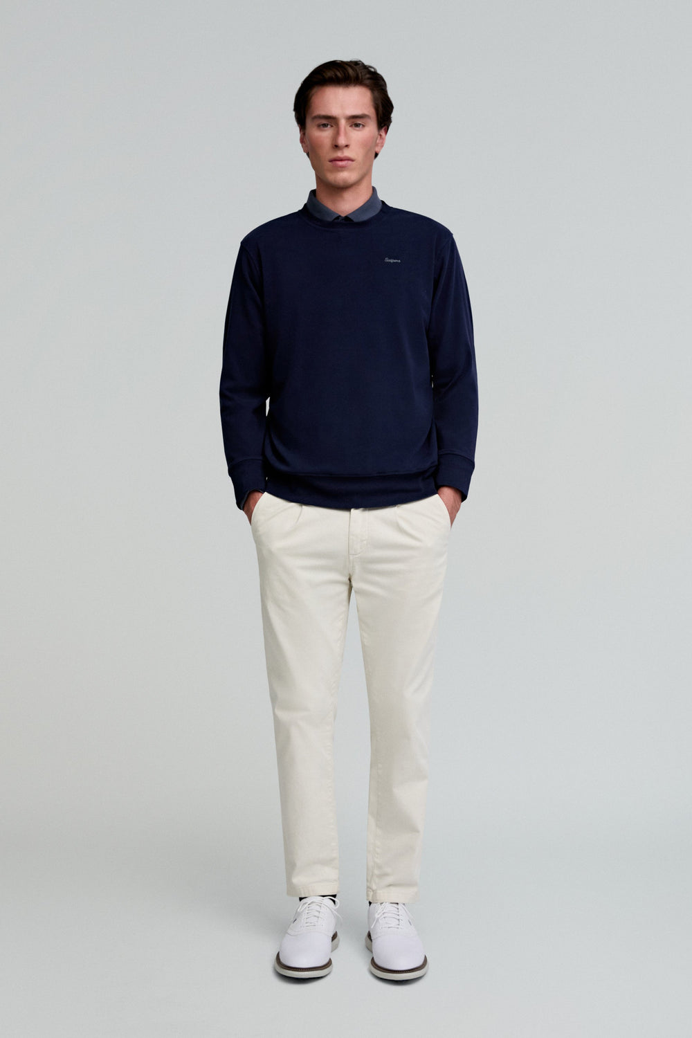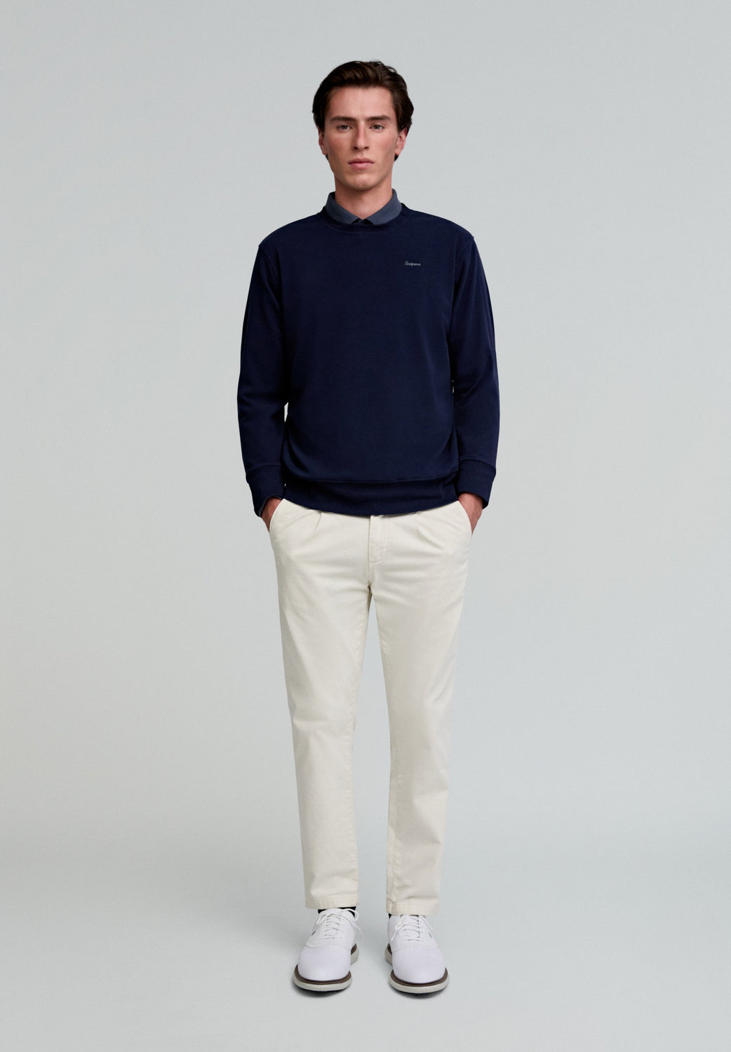 Sweatshirt made from technical fabric. Regular fit, round neck and long sleeves. Embroidered label detail on the hem.