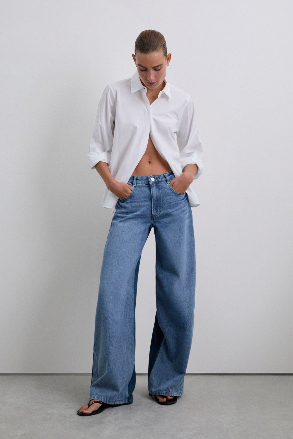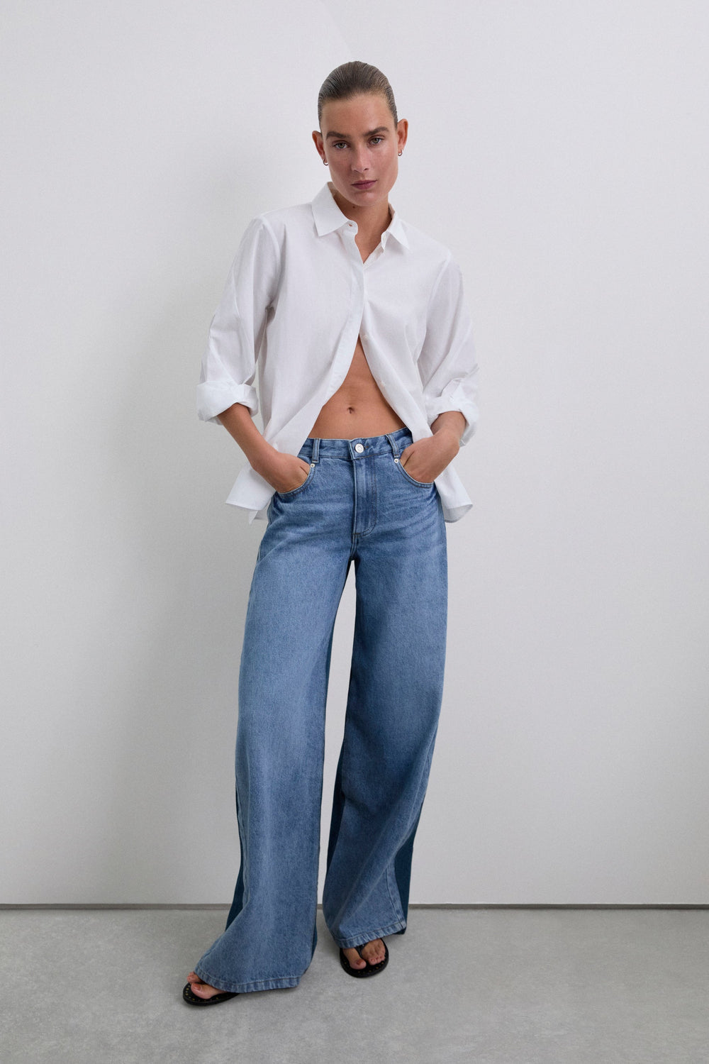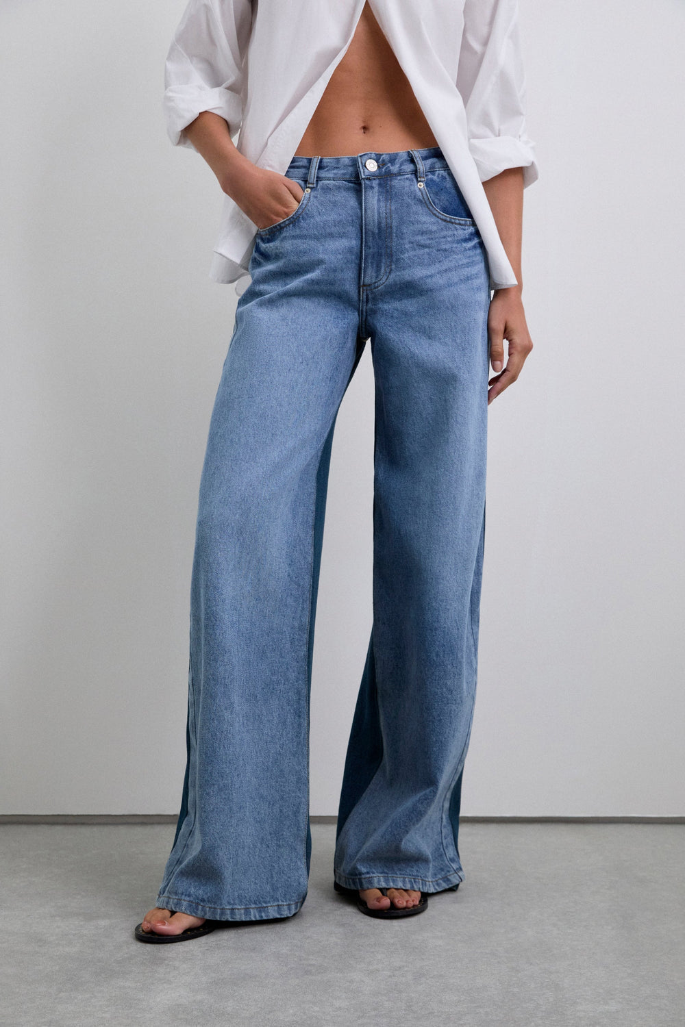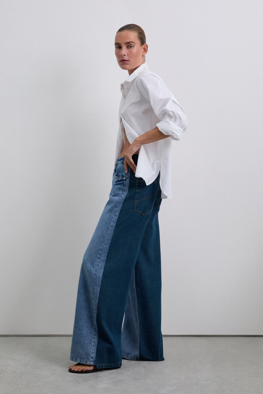 Denim trousers made of 100% cotton. regular fit, two-tone, zip and button fastening, belt loops, five pockets.