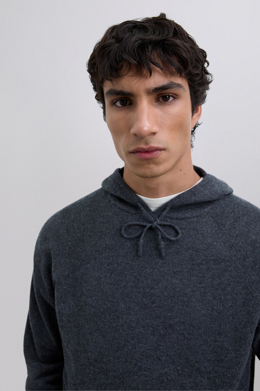 WOOL SWEATER WITH ADJUSTABLE HOOD