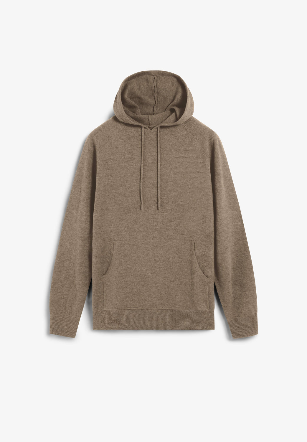 Sweater made of 100% wool. Adjustable drawstring hood. Long sleeves. Pouch pocket on the front. Ribbed cuffs and waistband.