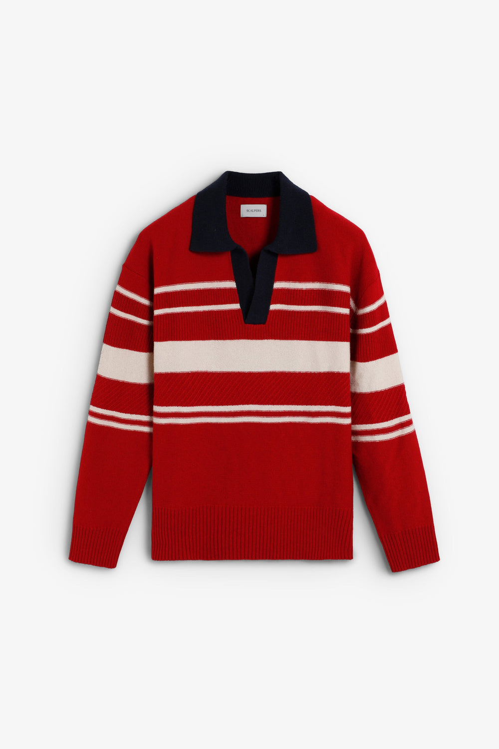 Wool and BCI cotton sweater. Regular Fit. Stripe print. Contrast polo shirt collar. Long sleeves. Ribbed trim.