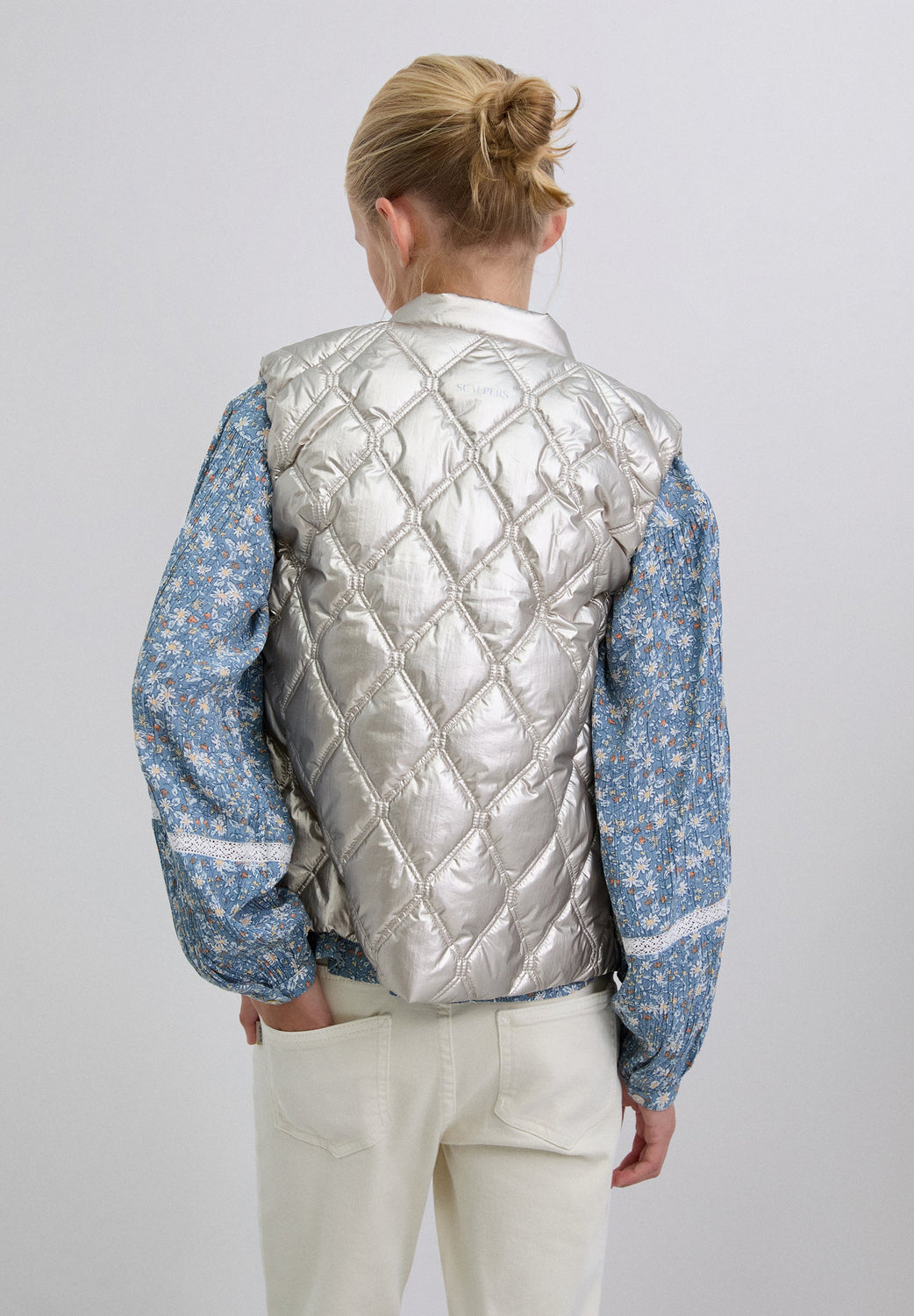 Reflective puffer vest. Front double slider zip fastening. Two front pockets. Rubberised patch with logo on chest. Logo detail on the back.