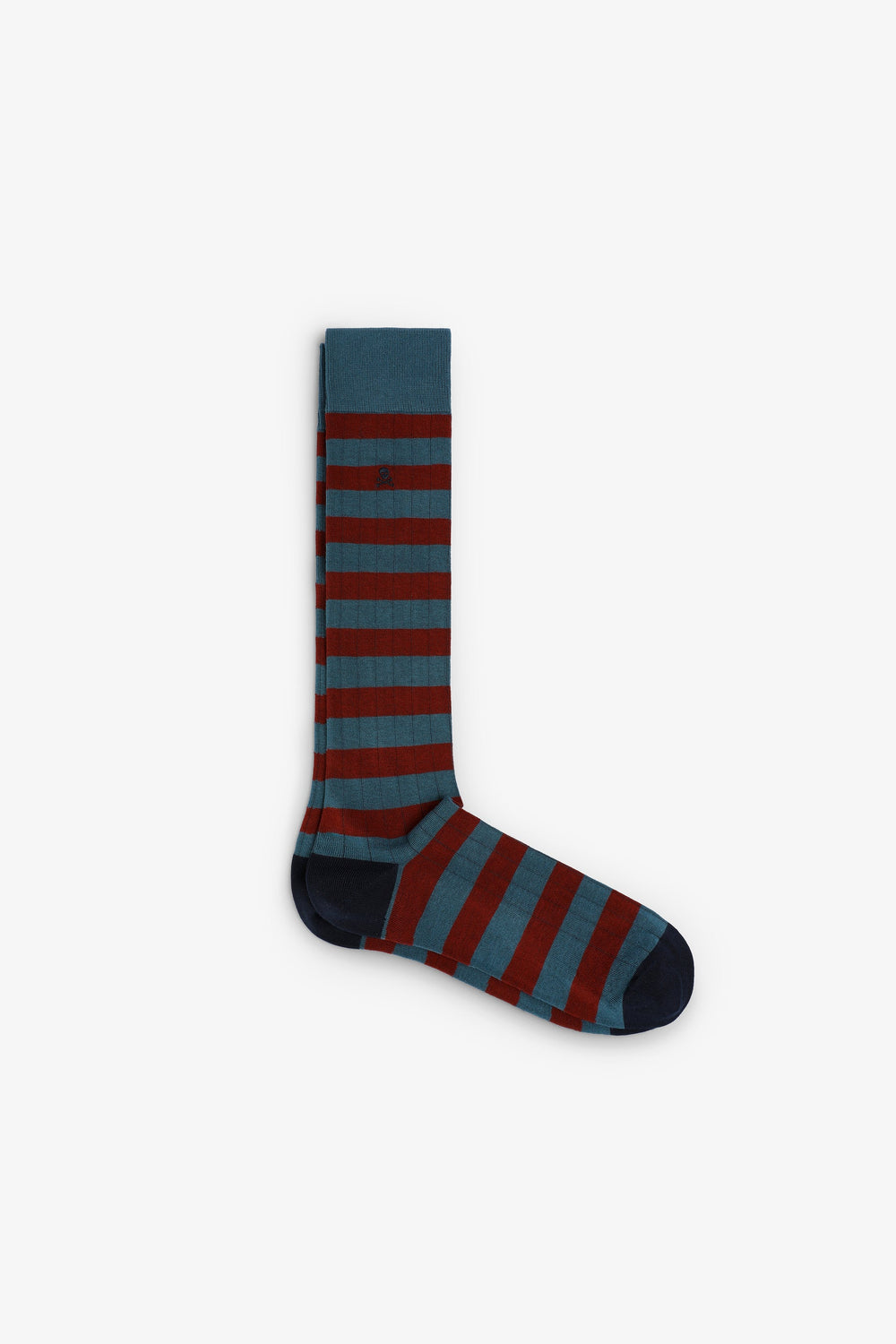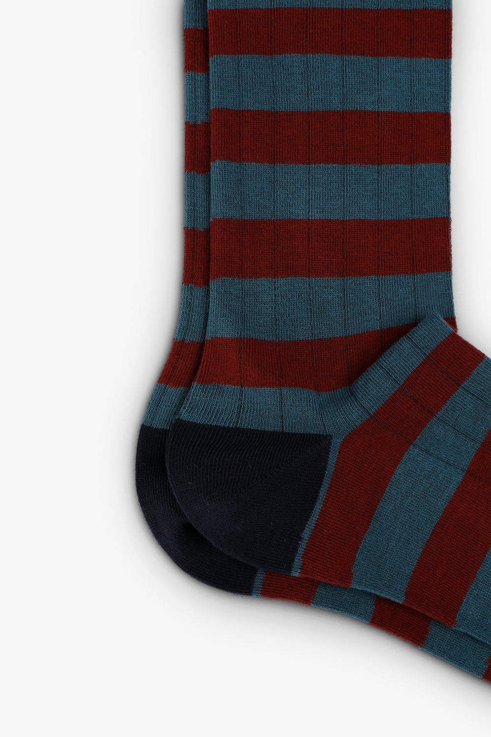 Socks made of an organic cotton blend. Stripe print. Contrast embroidered skull detail. Height: 36cm / Foot length: 23 cm.