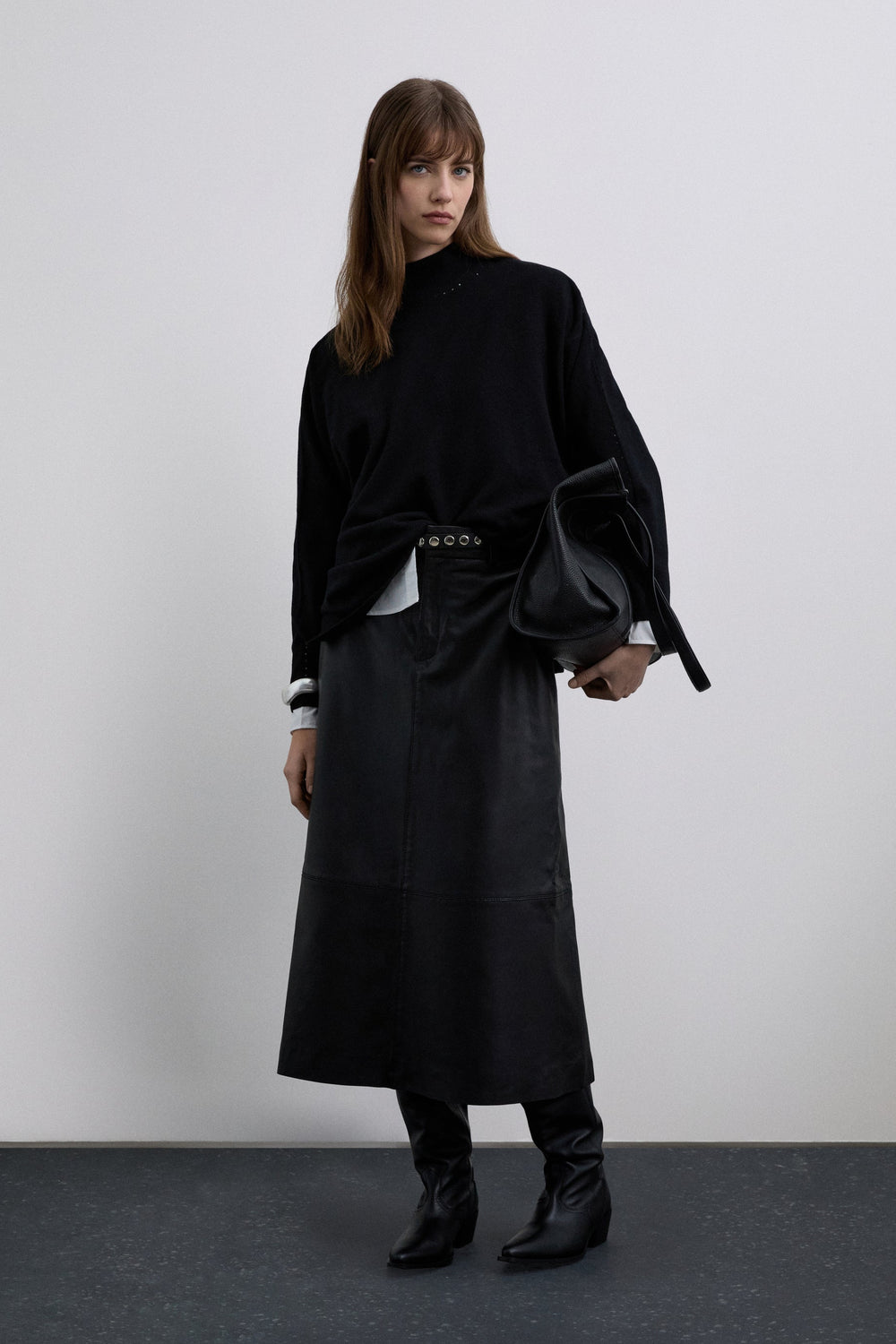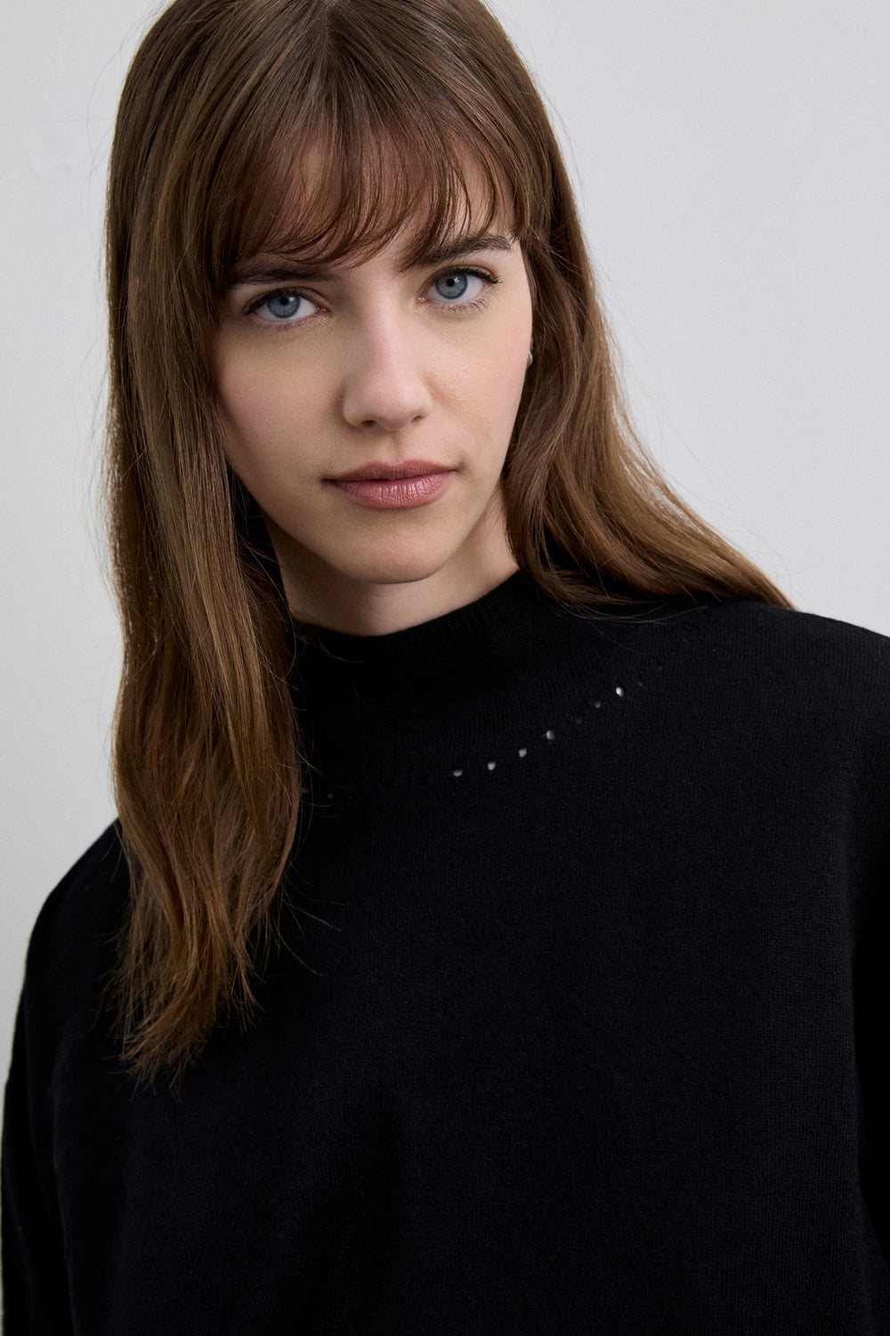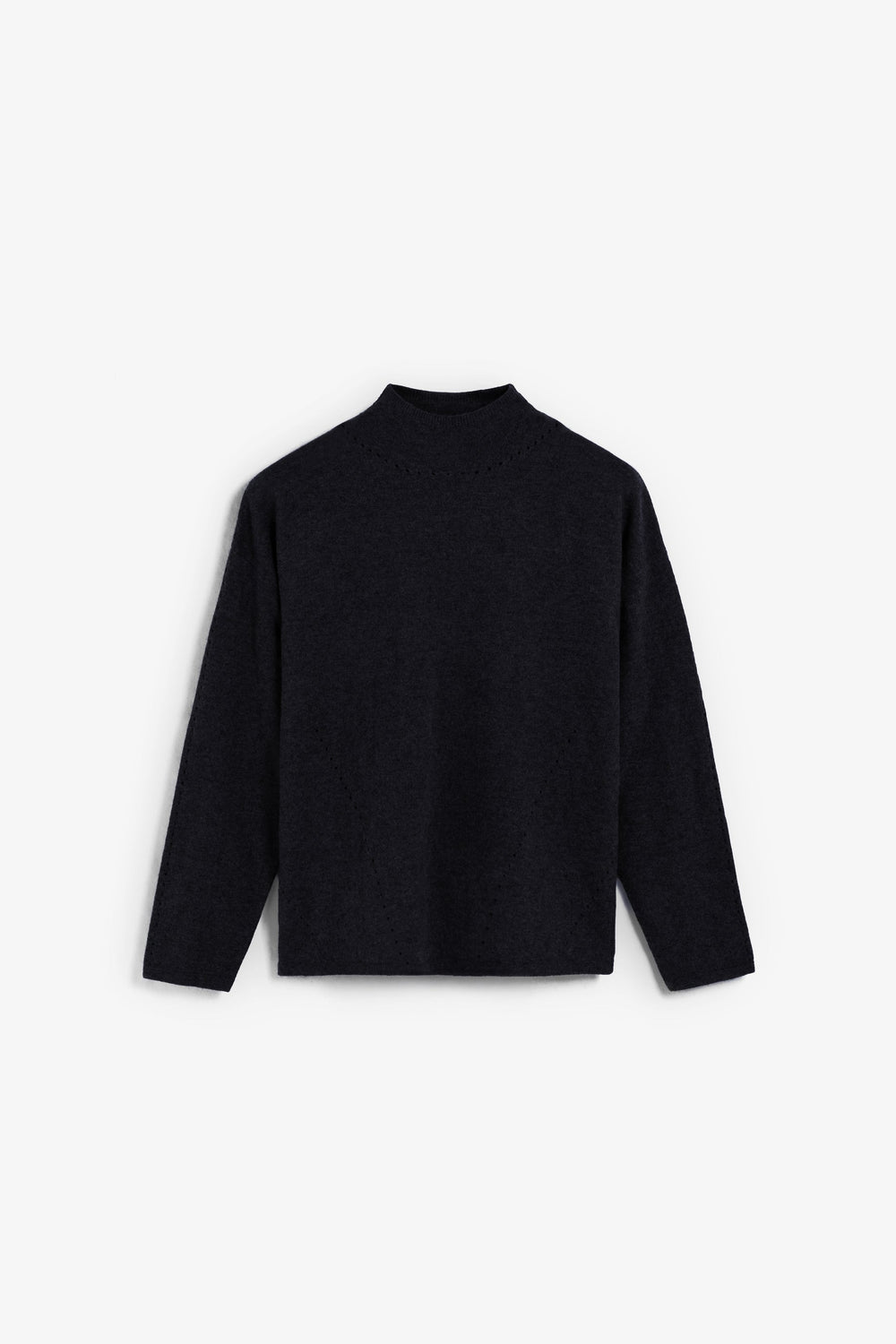 High neck sweater made of a wool blend. Regular fit. Long sleeves. Mini cutout detailing on the front, neck and sleeves.