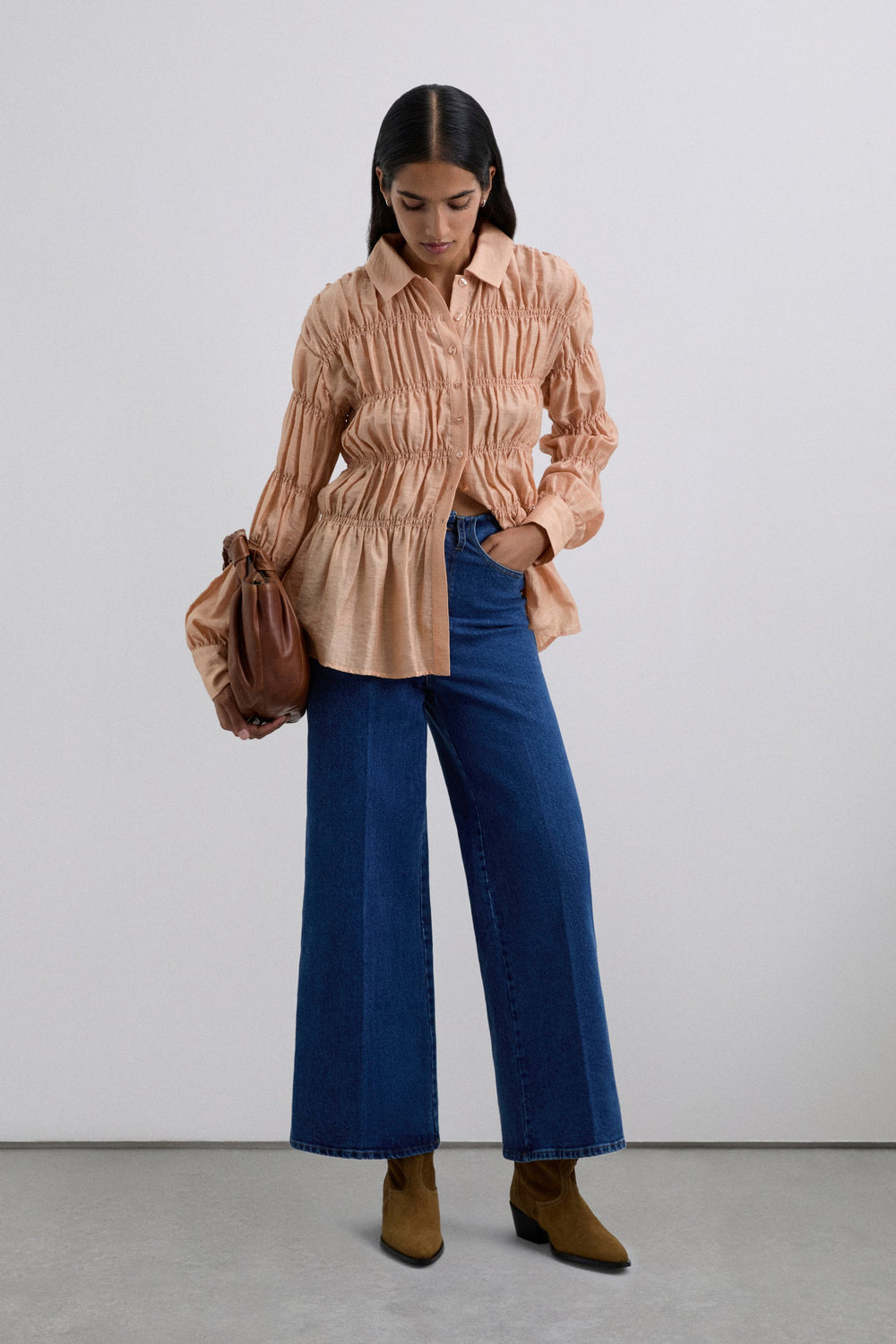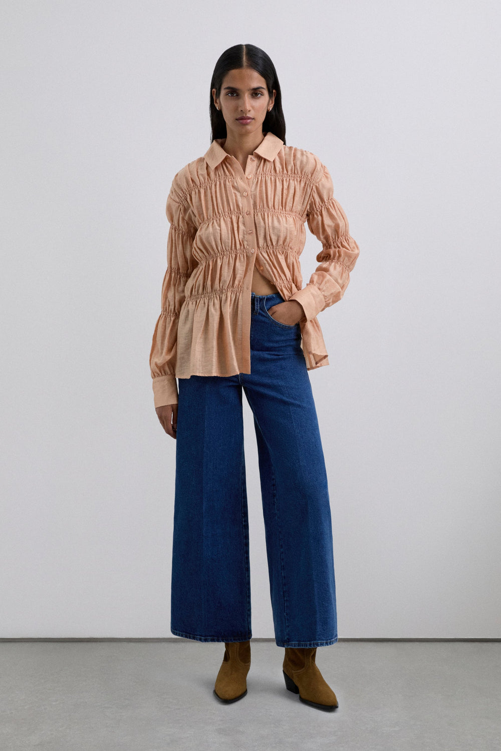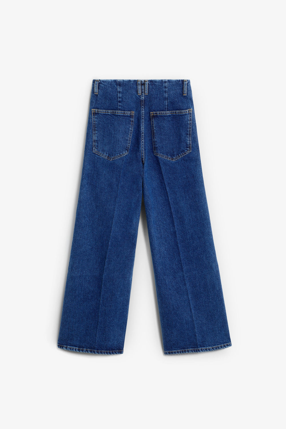 Jeans made of a slightly stretch cotton fabric. Culottes with high waist and zip and button fastening. Front and back pockets.