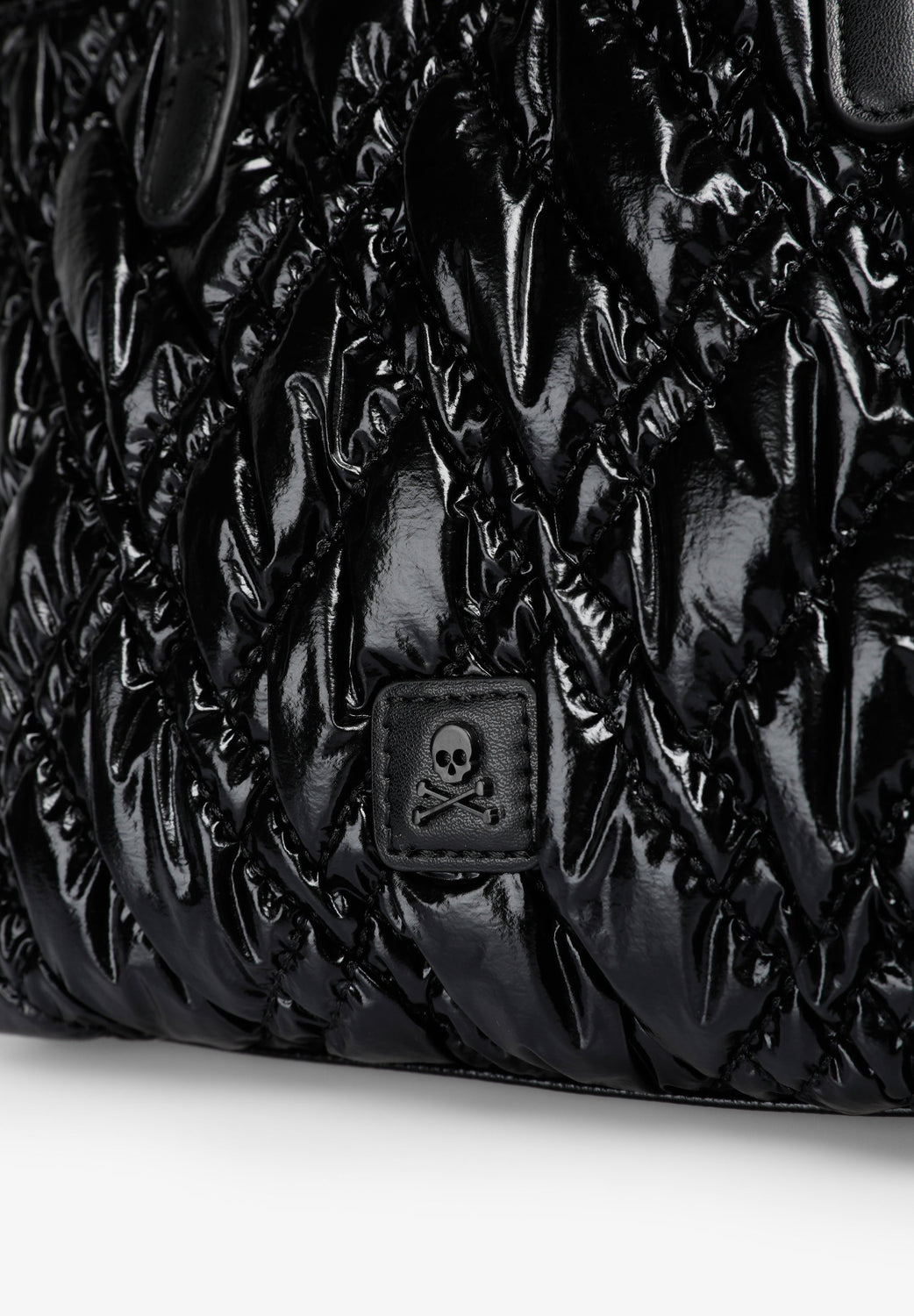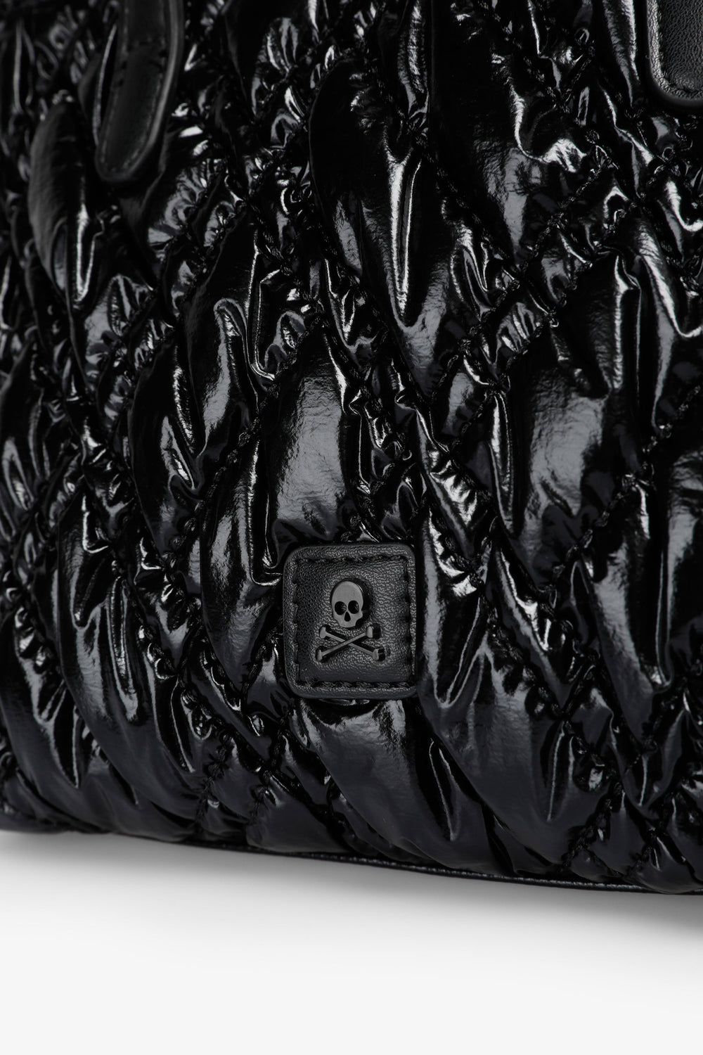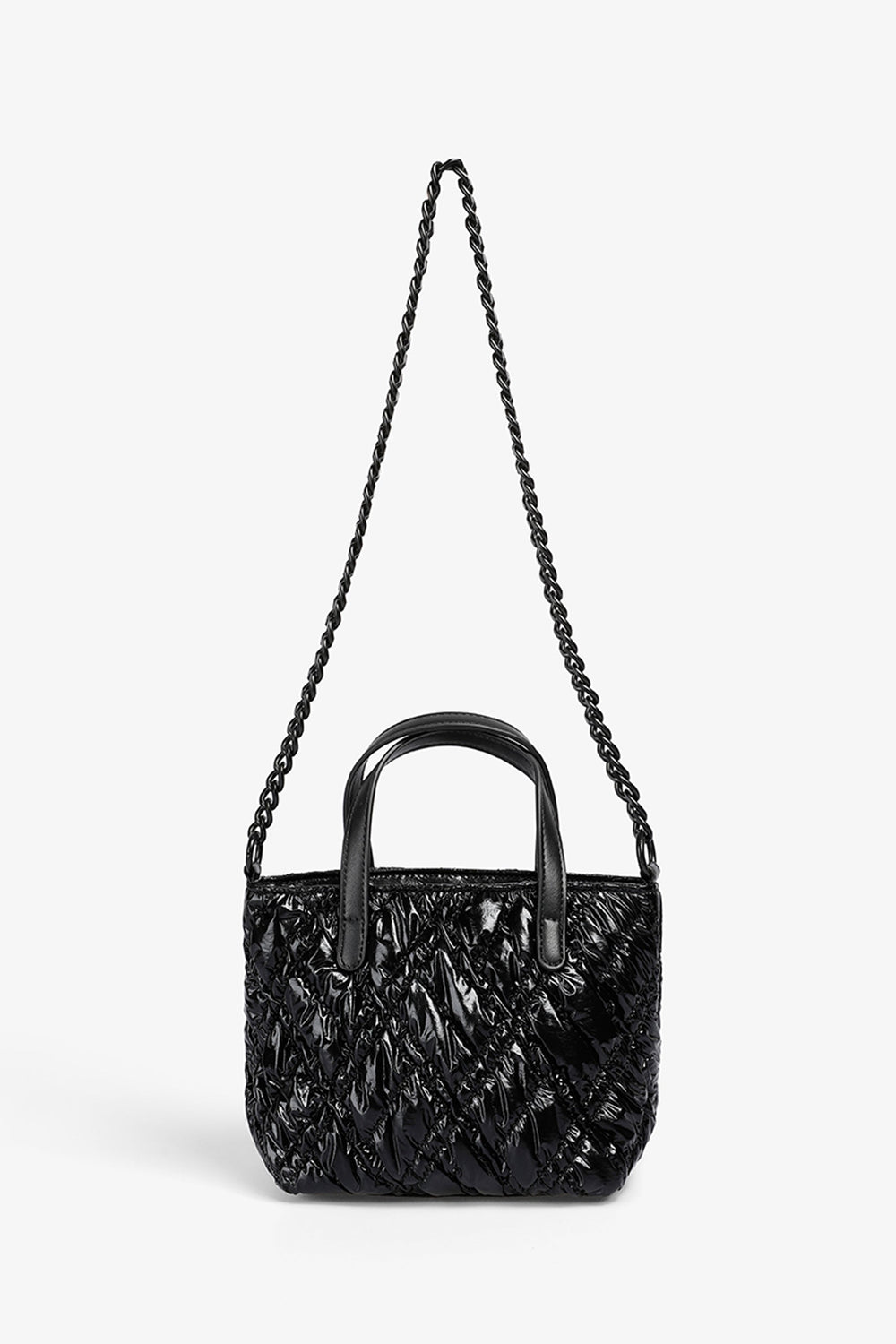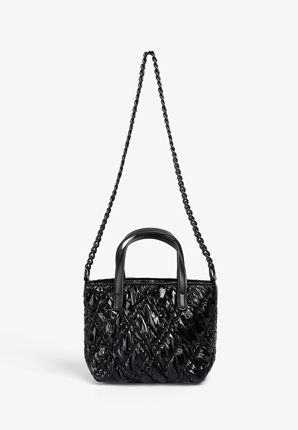 Quilted PU mini bag. Double strap, short and chain. Inner lining with zipped pocket. Zip fastening. Logo patch detail on the front.