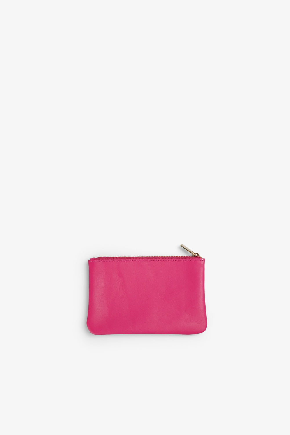 Coin purse crafted in fluorescent leather. Zip fastening and contrasting metallic embossed logo.