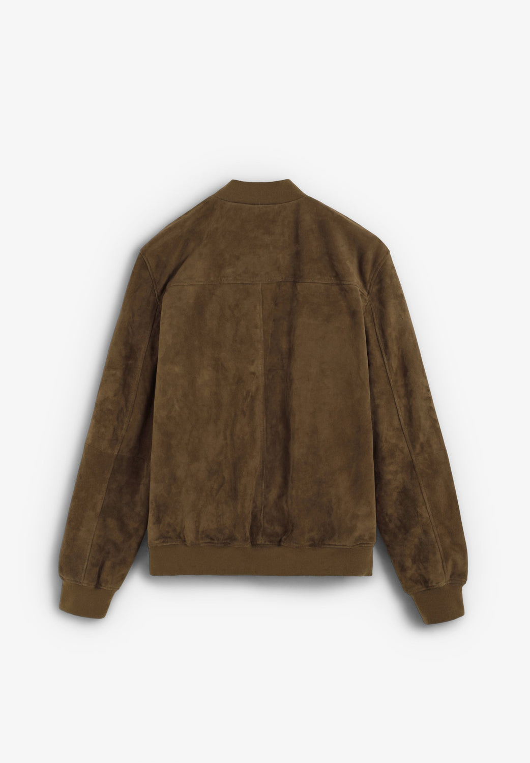 Bomber-style jacket made of 100% suede. Two pockets with press-stud fastening. Double slider zip fastening. Ribbed trim.