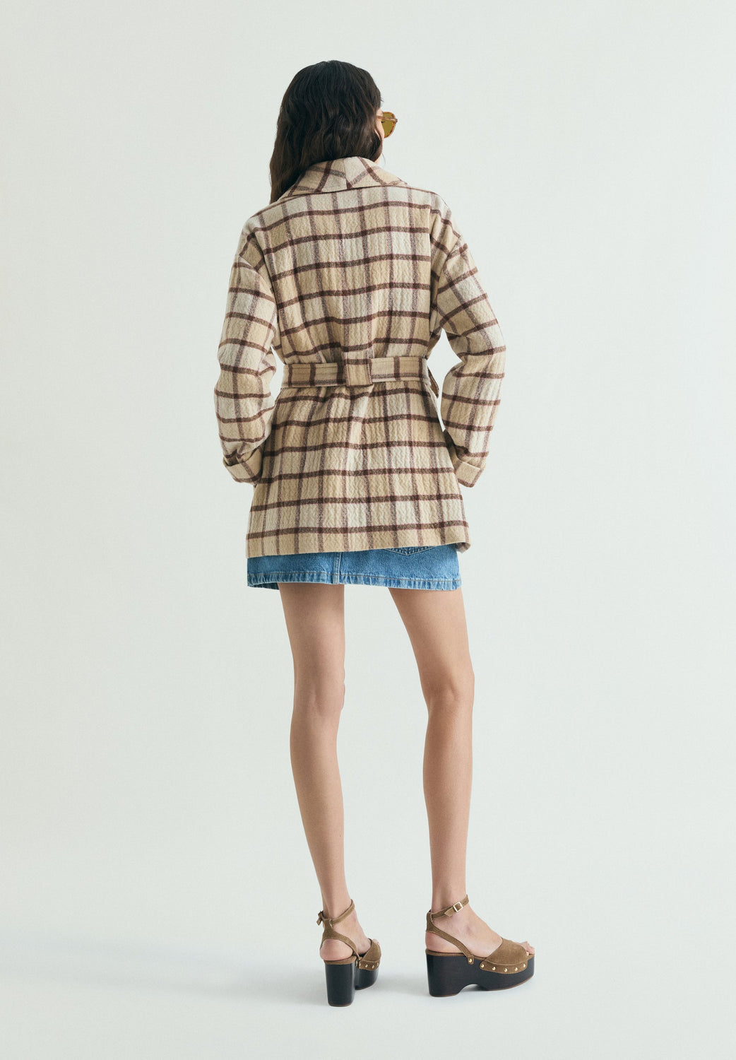 Checked cloth coat. Made of a wool blend. Slightly oversize design. Lapel collar. Button fastening. Long sleeves. Jetted side pockets. Belt loops and belt.