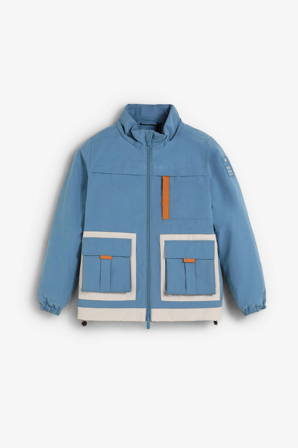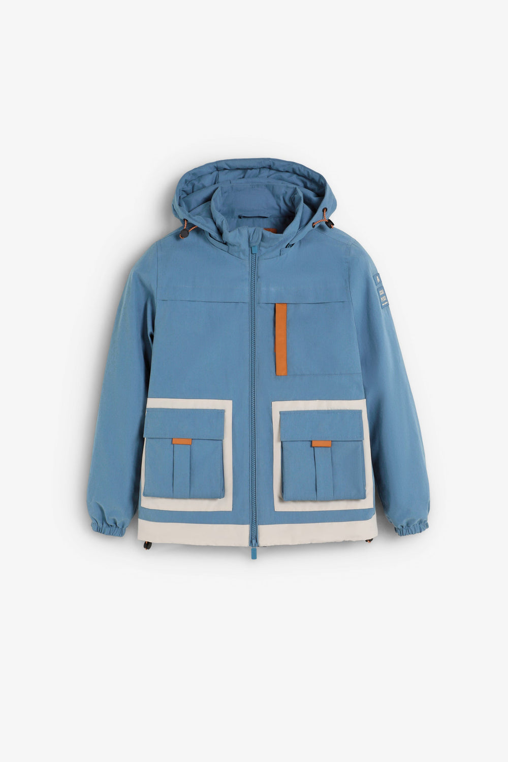 Jacket made of cotton and recycled fabric Regular fit, collar with adjustable hood and zip fastening. Long sleeves with cuffs and side logo patch. Front and chest pockets. Adjustable hem.