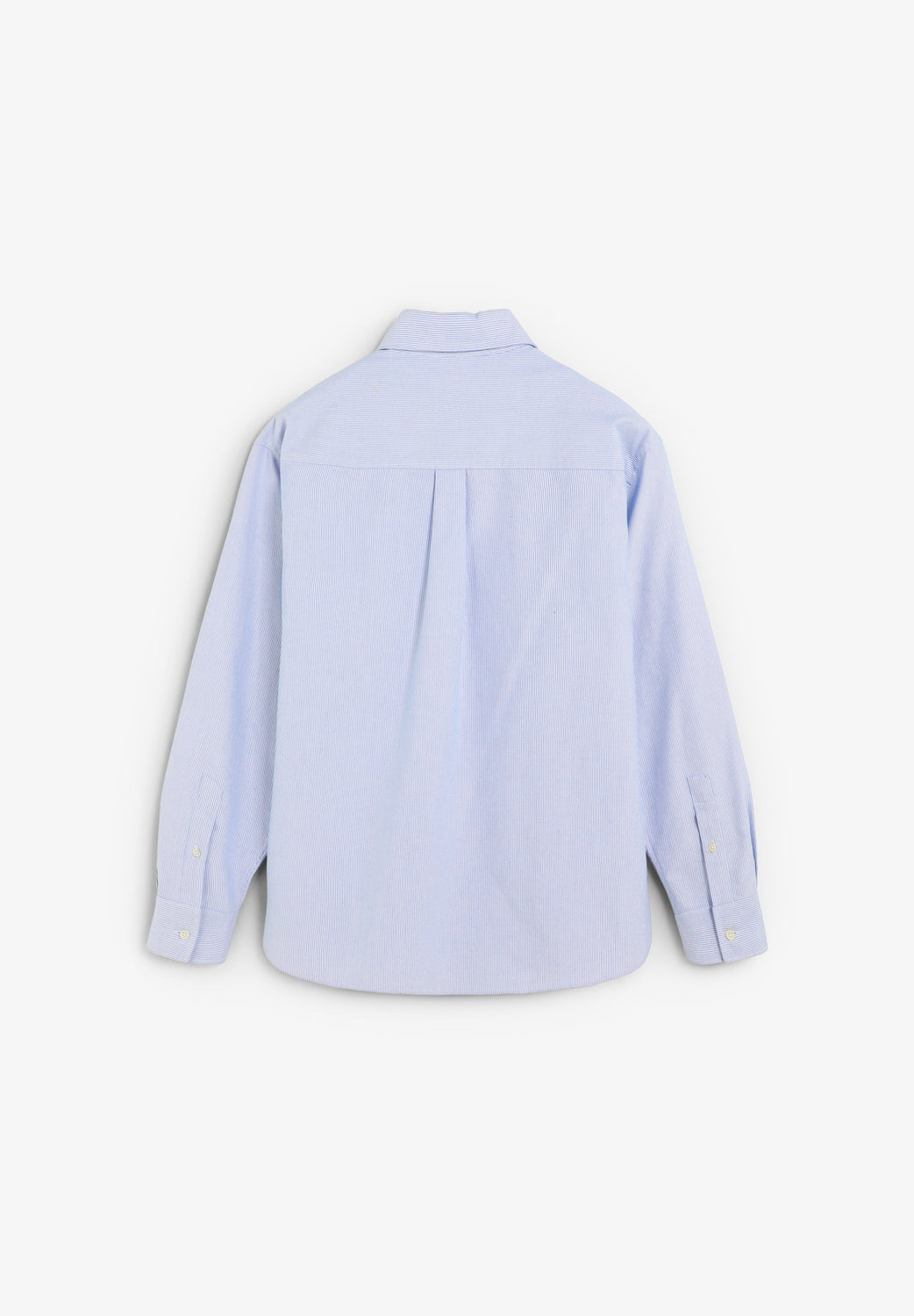 Shirt made of 100% BCI cotton. Stripe print. Chest pocket detail. Long sleeves. Button fastening at front and cuffs. Contrast embroidered skull detail on the lower front.