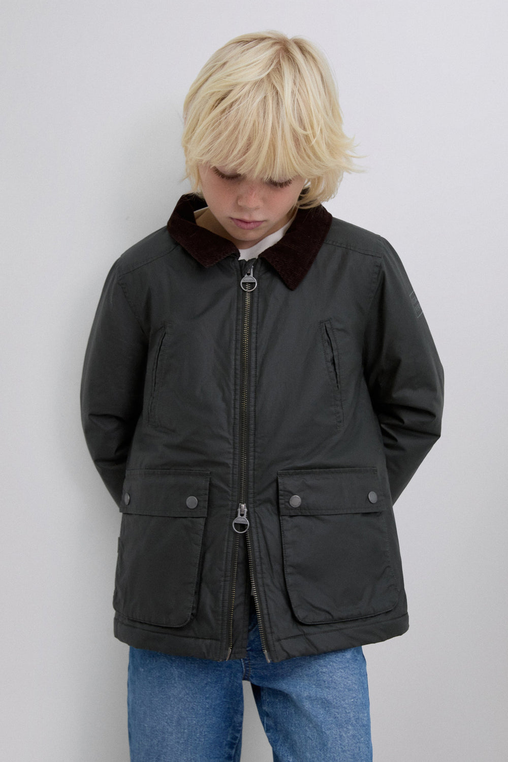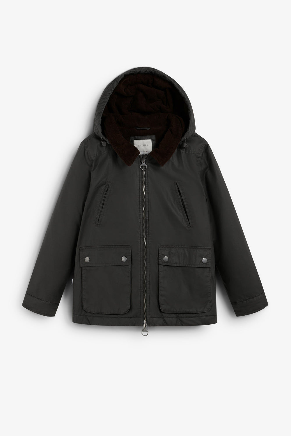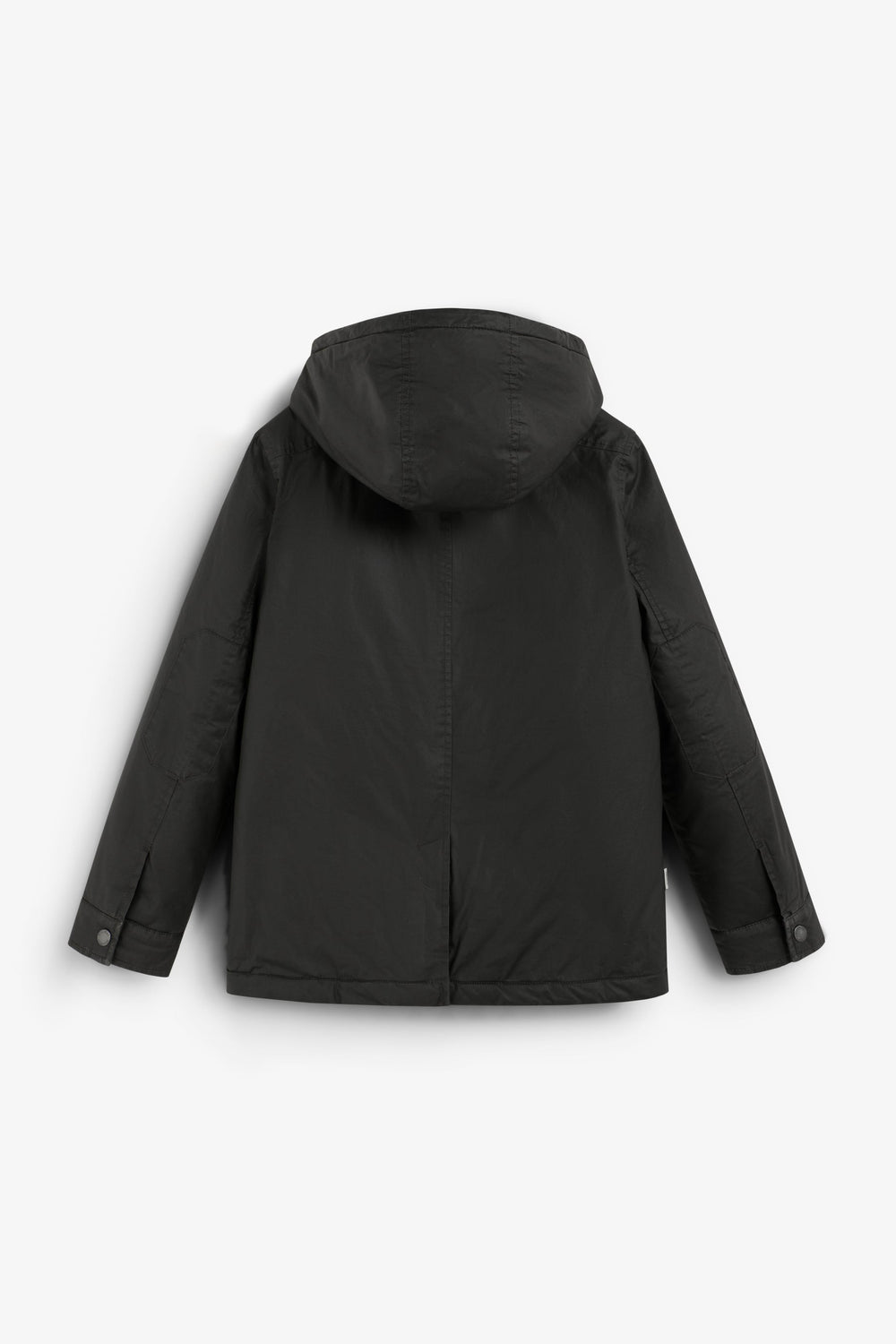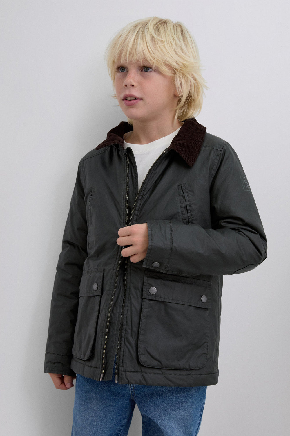 Parka made of 100% BCI cotton with a waxed effect. Regular fit, zip fastening and a detachable adjustable hood. Long sleeves and pockets with snap buttons and zip fastening. Corduroy lining.