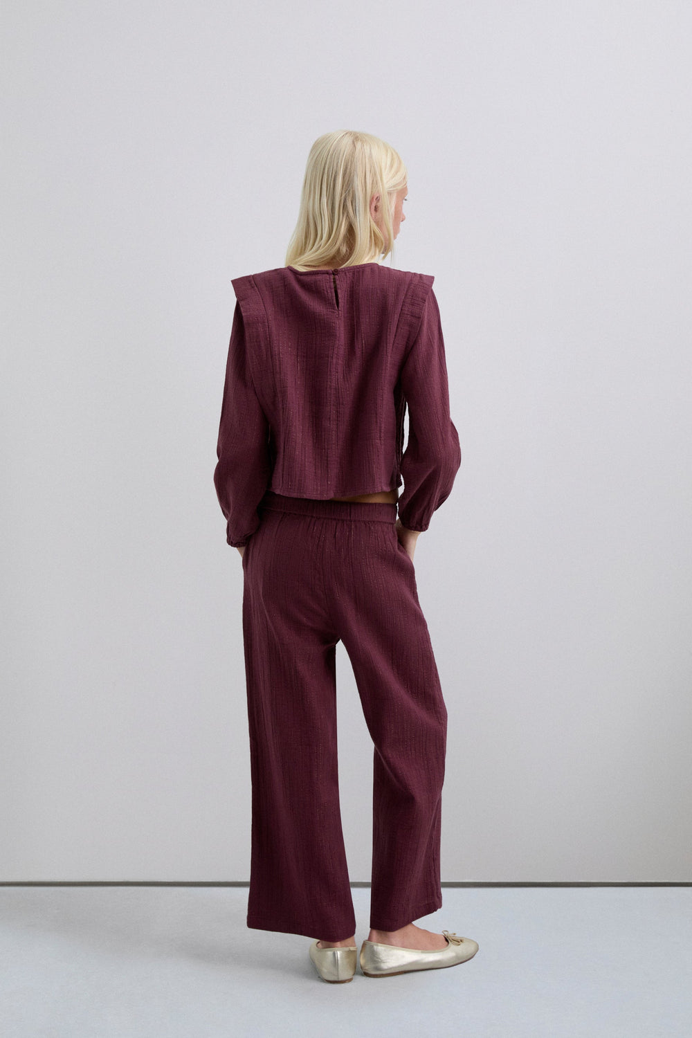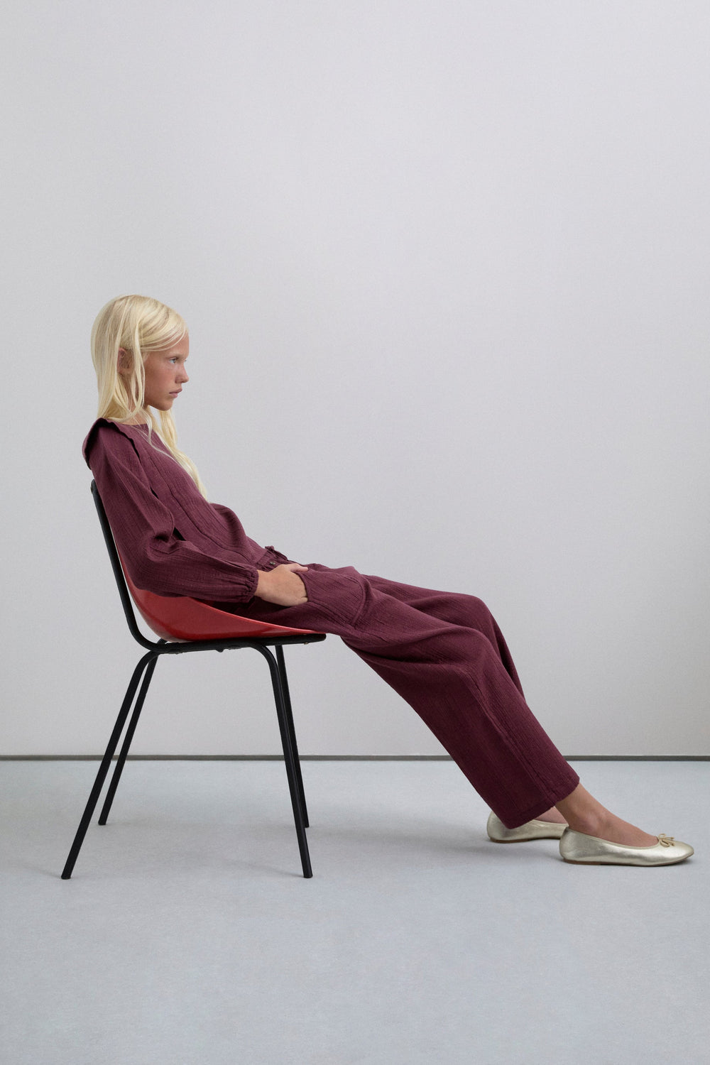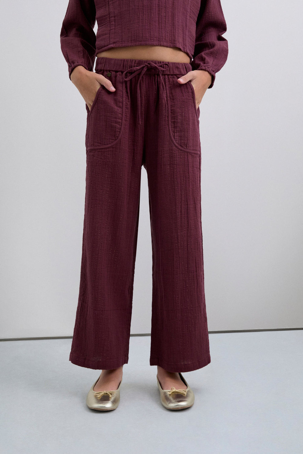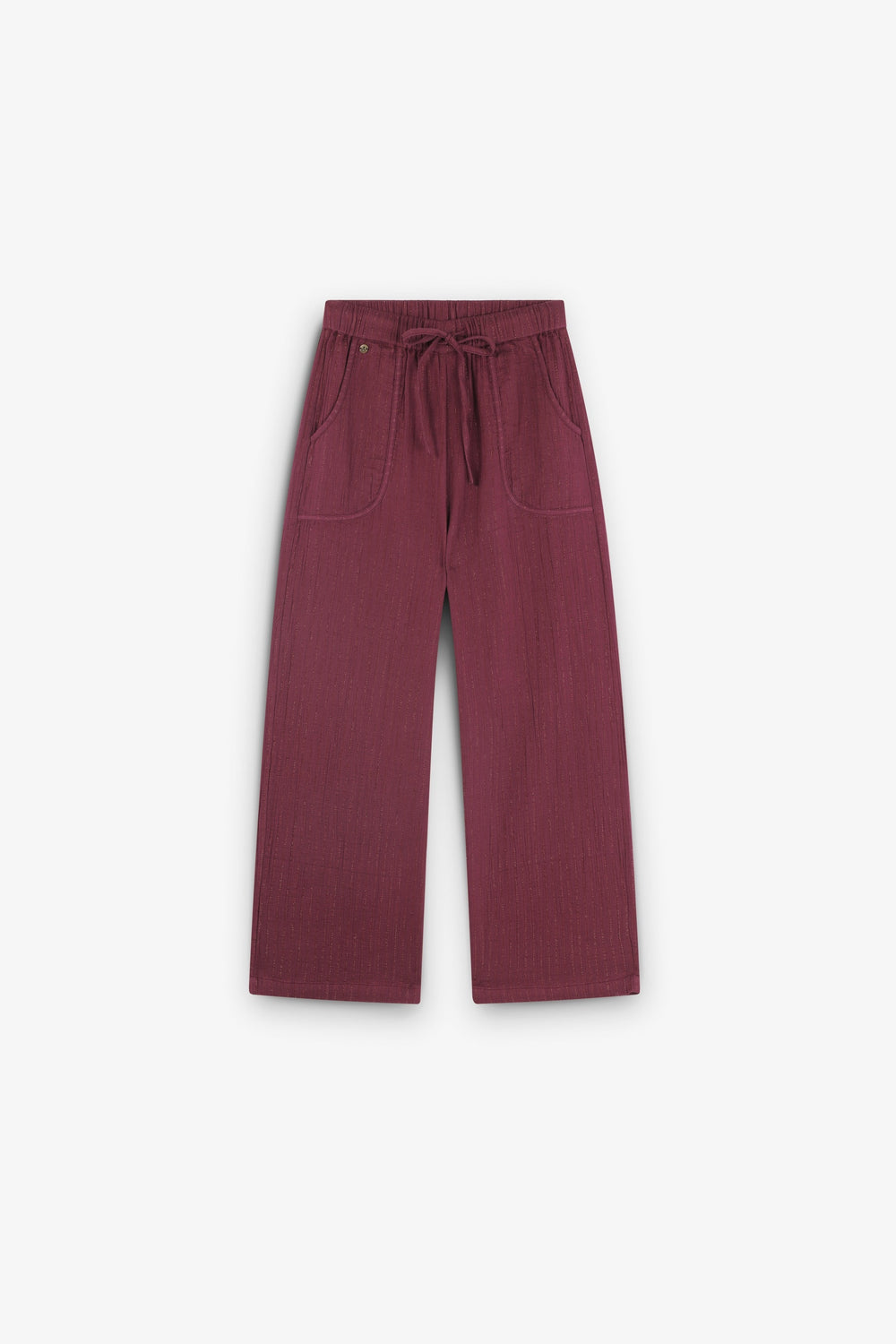 Culottes made of BCI cotton. Two front pockets. Slightly stretchy waistband with drawstring. Skull detail.