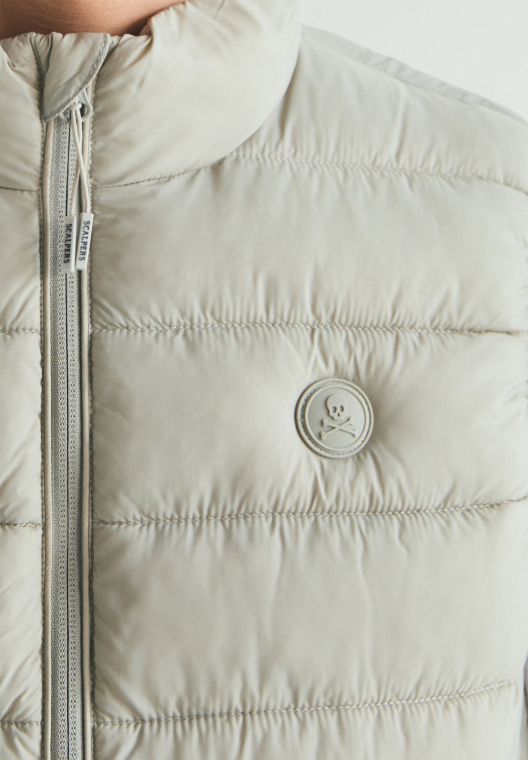 Puffer vest. Water repellent. Inner lining made of technical fabric. Concealed side pockets with fleece lining. Engraved double slider zip fastening. Rubberised patch with matching logo on chest.