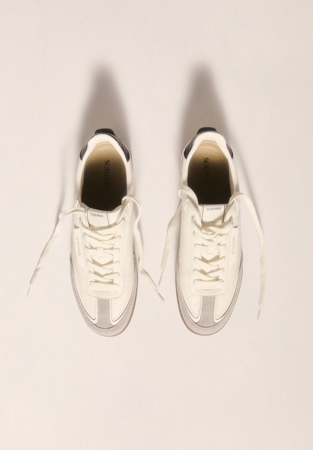 Retro style trainer made of nappa leather and cow suede. Reinforced split leather toe cap. Contrast heel counter. Contrast TPR sole. Engraved logo on heel and side.