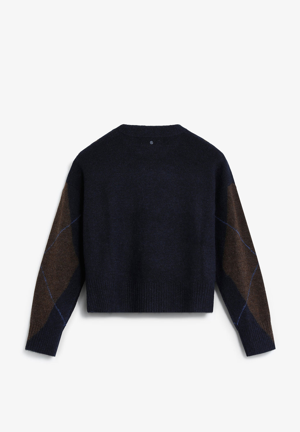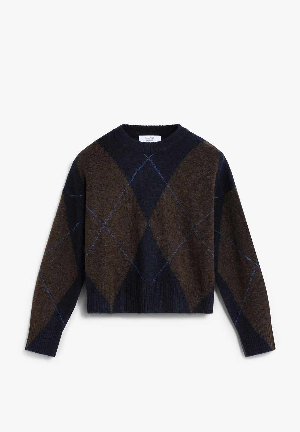Sweater made of wool blend. Diamond pattern. Regular fit. Ribbed round neck. Long sleeves with ribbed cuffs.