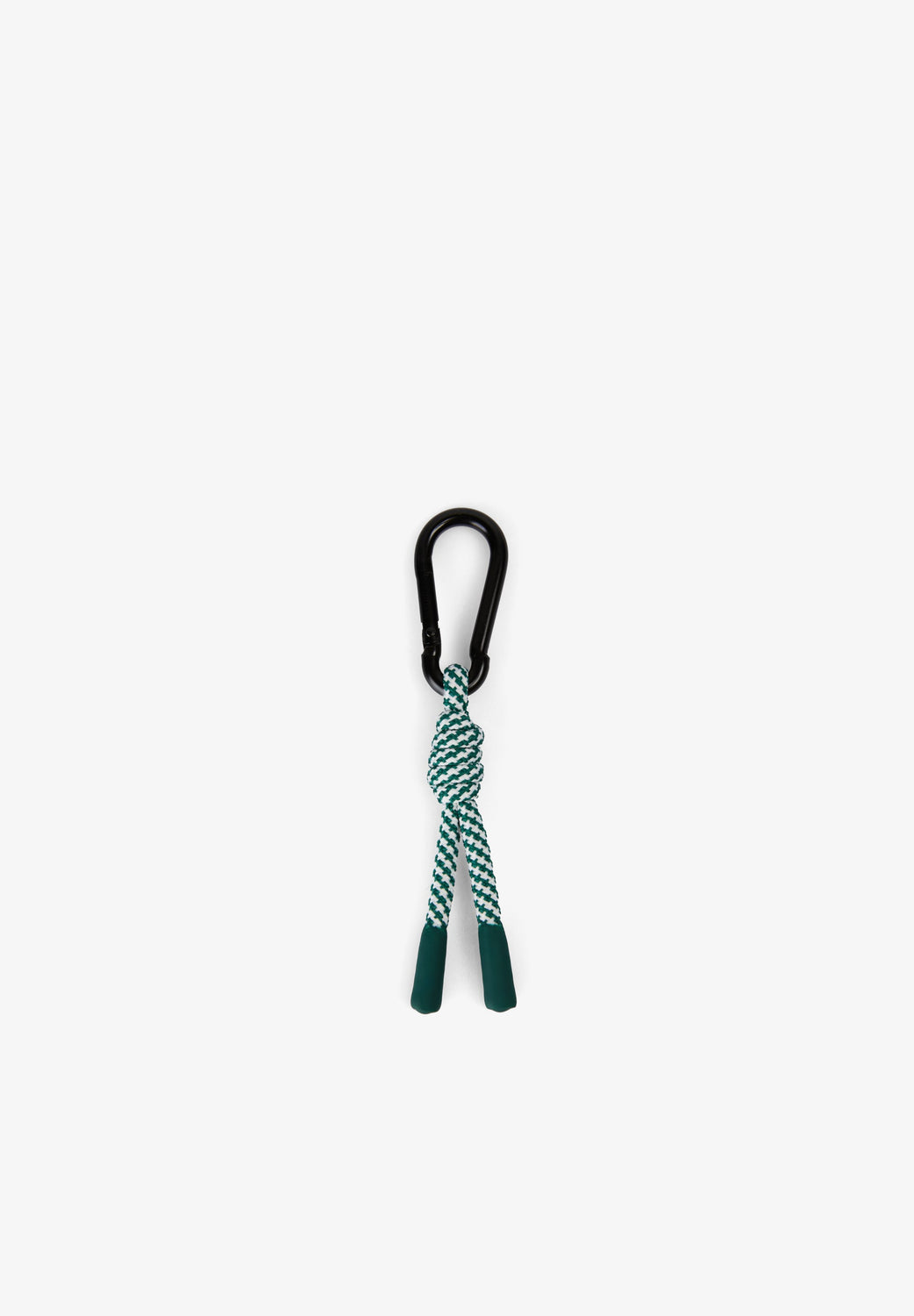 Keychain with rope knot and carabiner. Logo details on the ends.