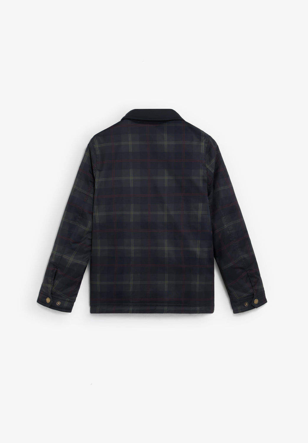 Checked jacket with contrast collar. Concealed main zip fastening with customised zip puller and buttoned placket. Two side pockets with press-stud fastening. Pointed cuffs with adjustable press-stud fastening.