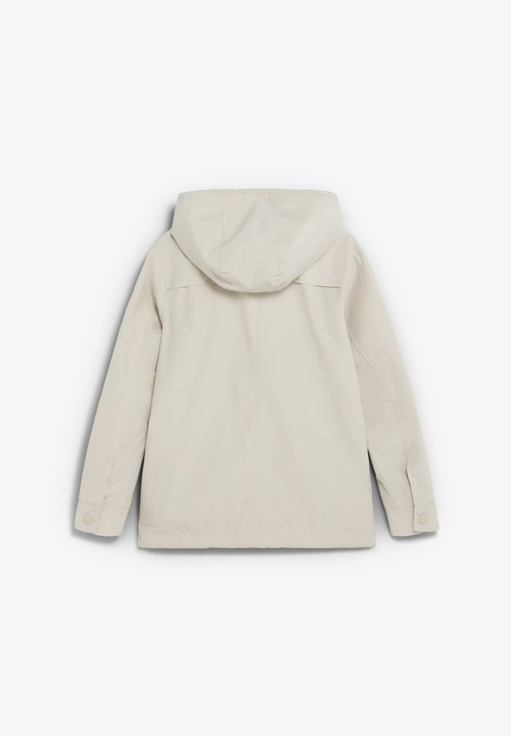 Parka made of technical fabric. Adjustable drawstring hood. Front zip and press stud fastening. Front flap pockets. Contrast logo detail on the sleeve.