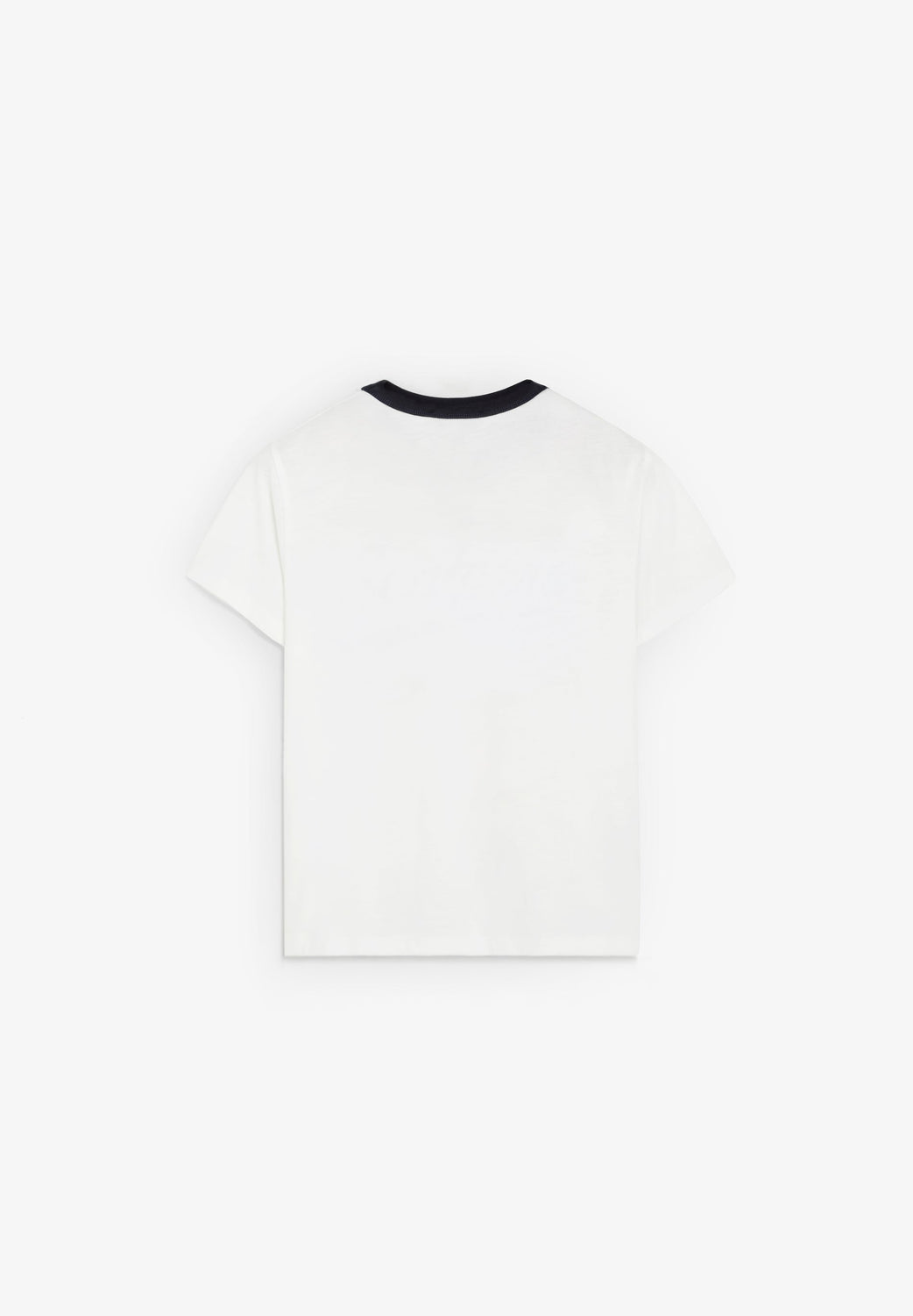 T-shirt made of 100% BCI cotton. Regular Fit. Round neck and short sleeves. Back print and chest detail. Striped detail on the sleeves.