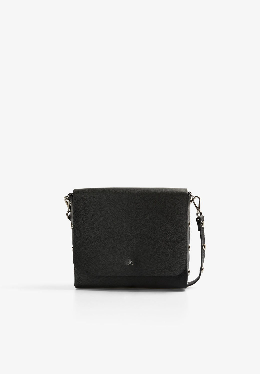 Bag made of 100% leather. Suede lining. Adjustable strap. Appliqué details on sides and strap. Metal skull on the front. Printed logo detail.