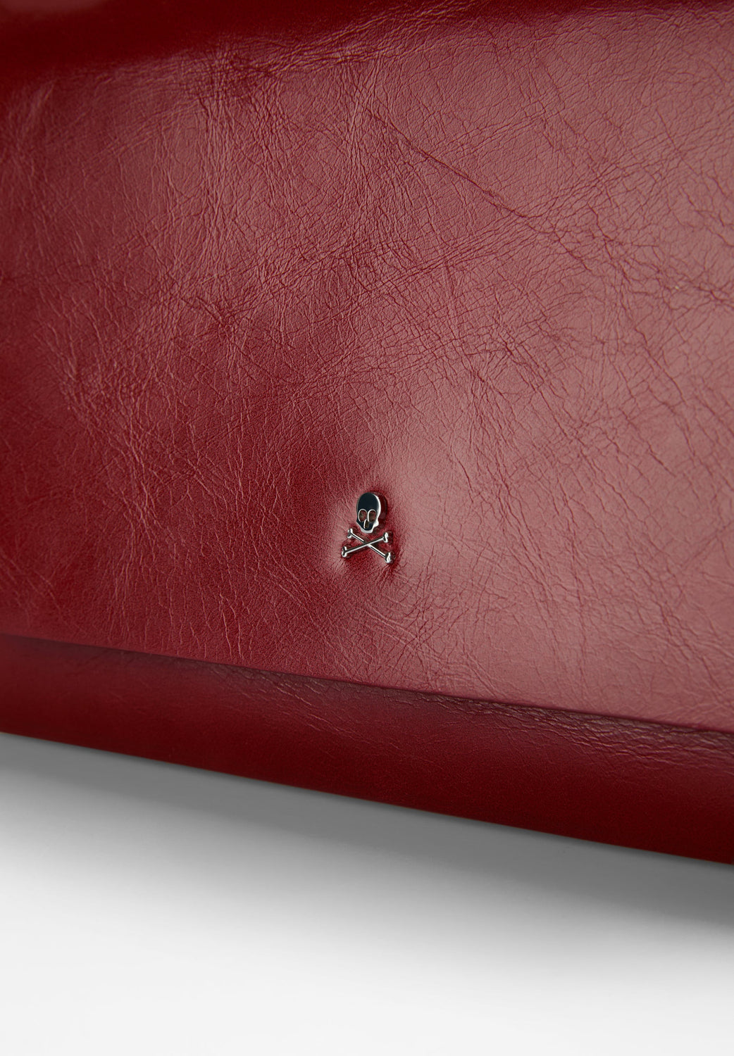 Small flat bag. Made of 100% leather. Snap closure. Long detachable strap and short handle. Side studs.