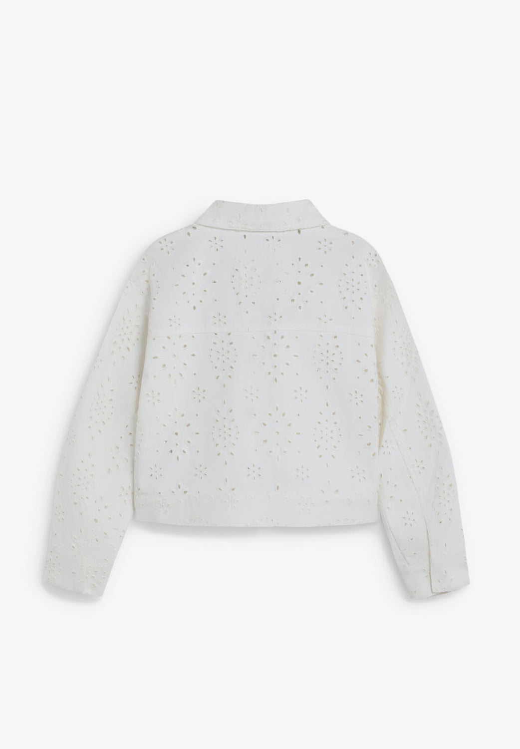 Jacket made of 100% BCI cotton. Perforated fabric. Regular Fit. Shirt collar, long sleeves. Concealed button fastening. Front pockets.
