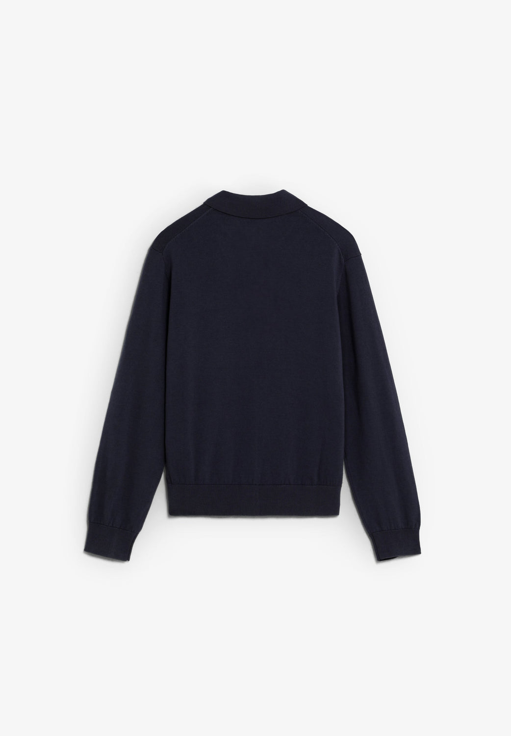 Knitted sweater with polo shirt collar and three-button fastening. Long sleeves with ribbed cuffs. Matching embroidered logo detail.