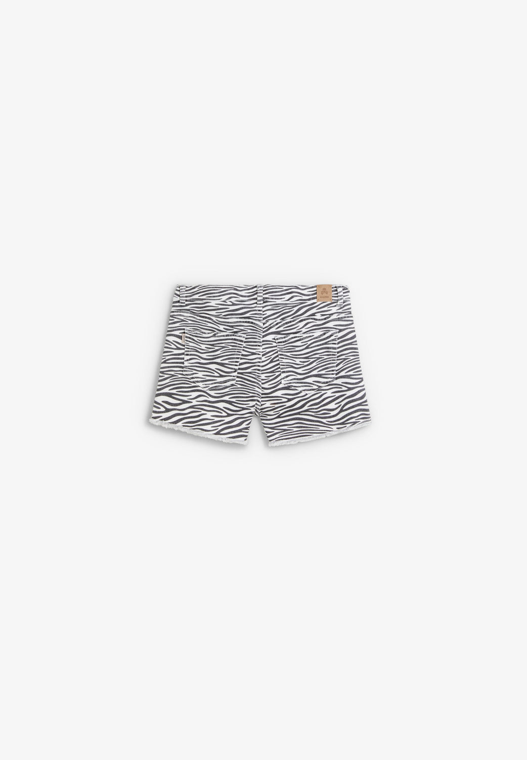 Denim shorts made of slightly stretchy cotton. Animal print. Belt loops and button and zip fastening. Frayed edge detail. Logo on the front.