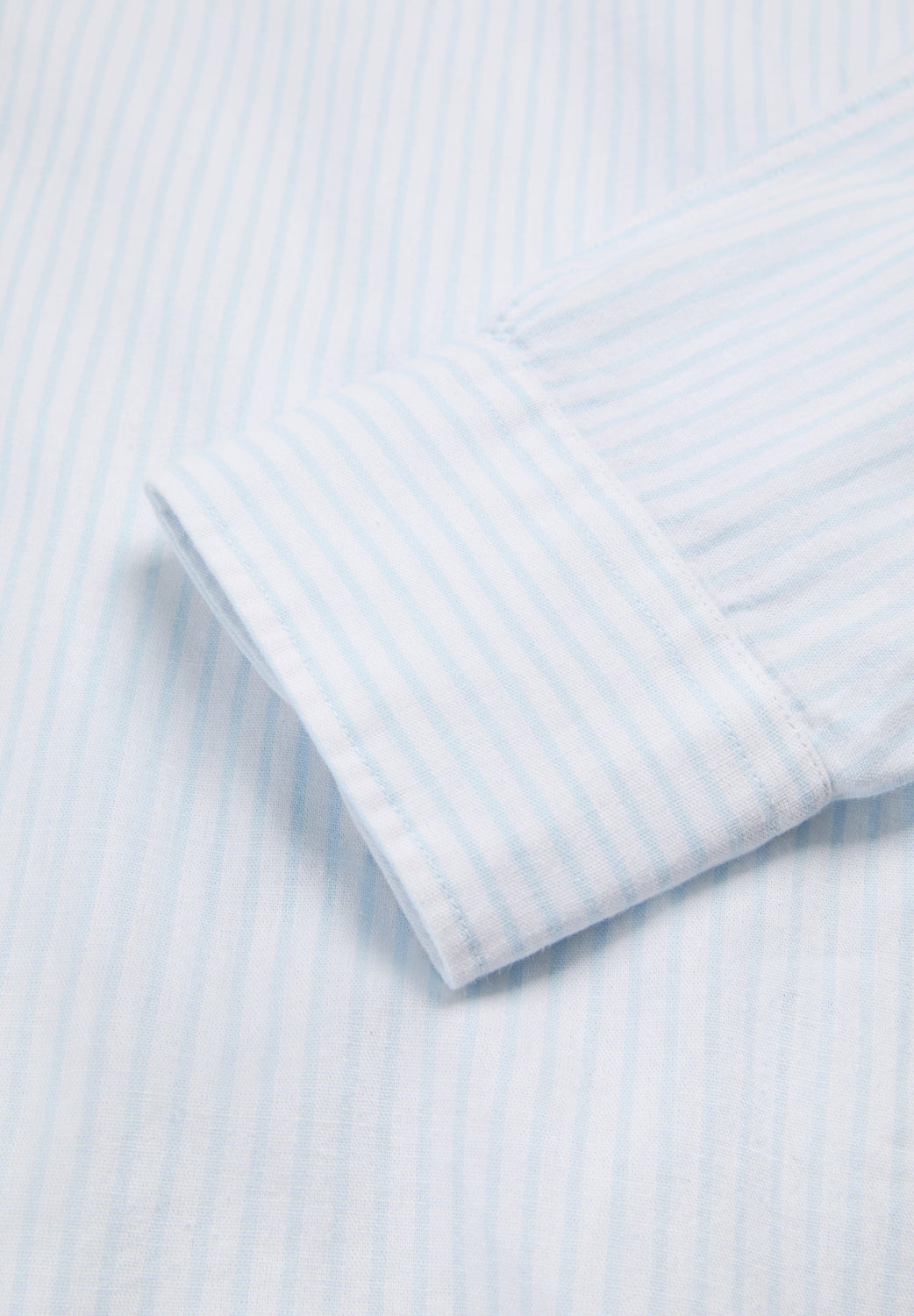 Oxford shirt made of a cotton and linen blend. Stripe print. Front button fastening. Contrast embroidered skull on the chest.