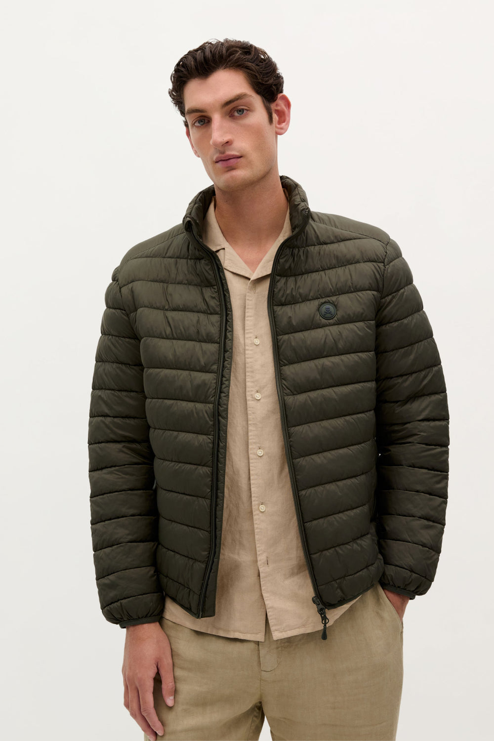 Chaqueta acolchada con parche de calavera engomado.