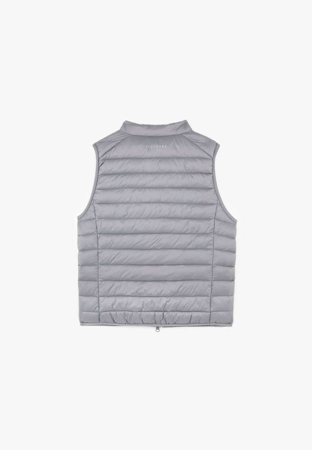 Quilted gilet with a skull detail. Made of nylon, regular fit, high collar, zip fastening and zipped pockets.