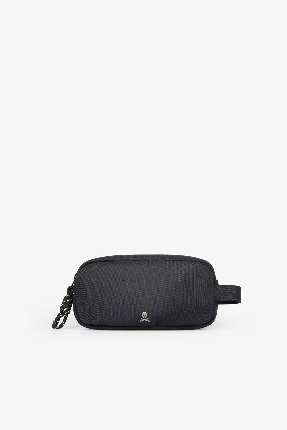 Technical fabric toiletry bag with a front skull detail featuring double zip pockets, a side handle and a 2L capacity