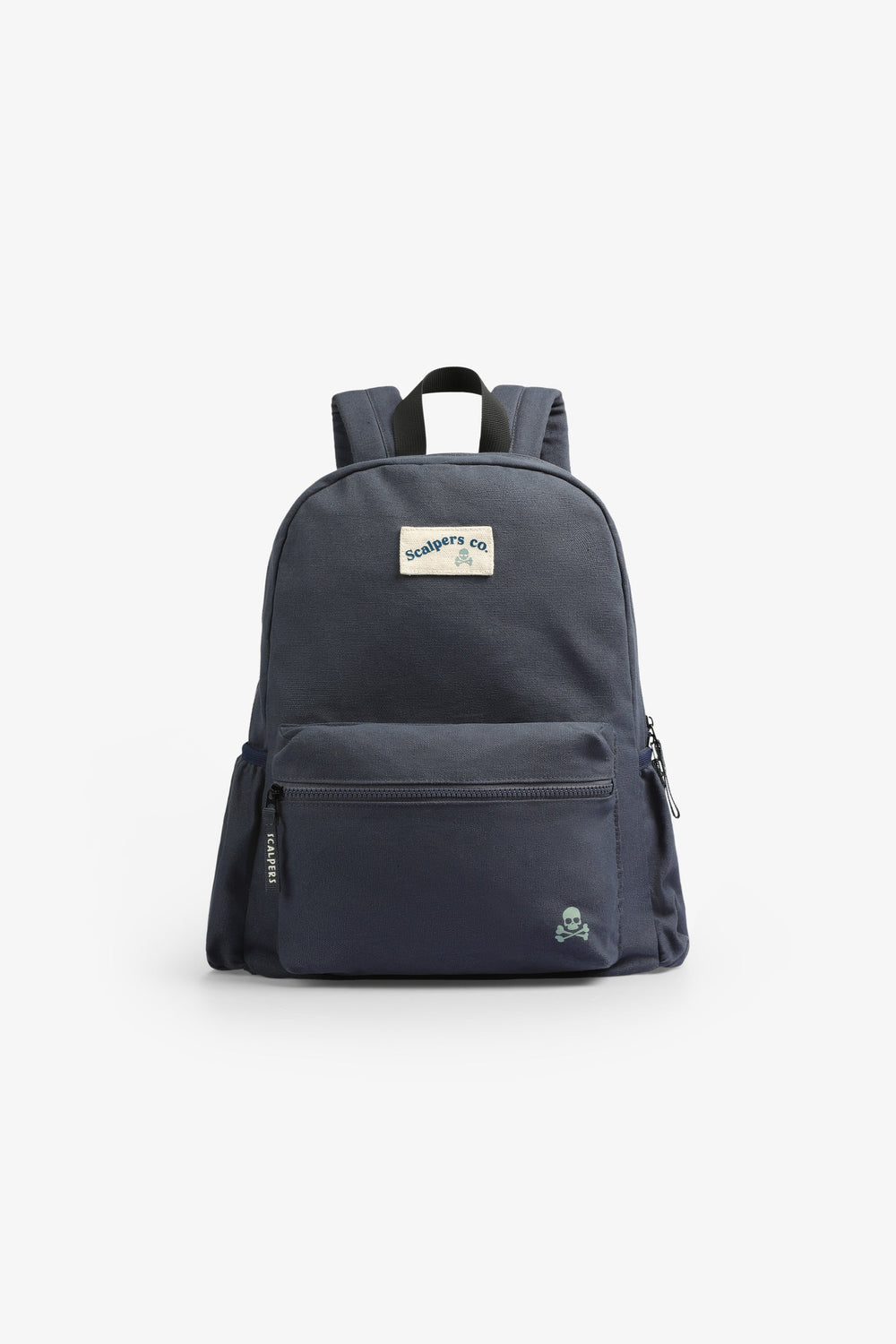 Backpack made of a technical fabric. Double compartments, zip fastening and double back and shoulder straps. Front pocket with zip and contrast skull detail at the front.