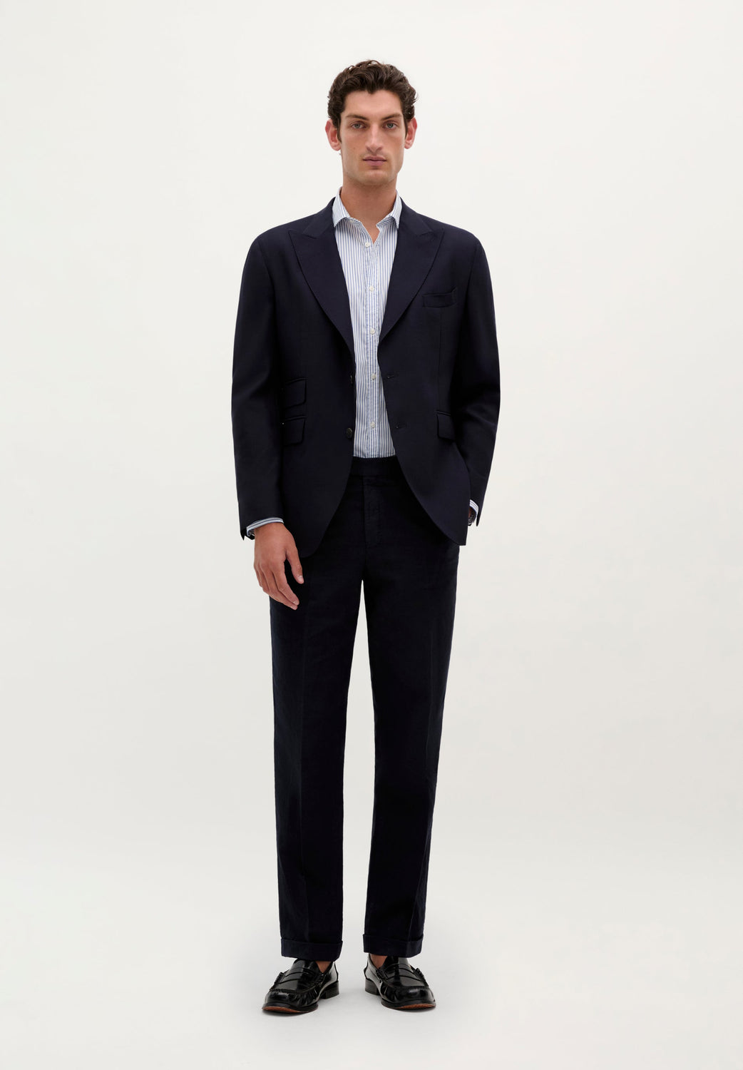 Americana confeccionada en mezcla de lana. Corte Slim Fit, cuello con solapas de muesca y ojal y cierre con dos botones. Manga larga terminada en puño de tres botones y bolsillos delanteros. Aberturas traseras y bolsillos interiores.