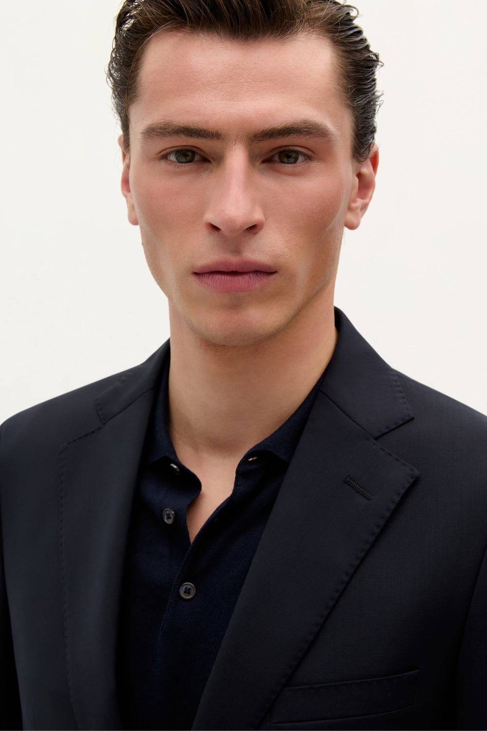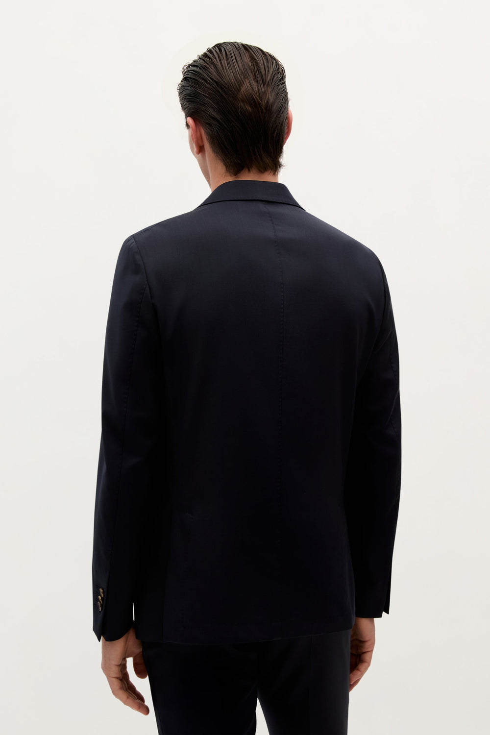 Americana confeccionada en 100% Lana Italiana Marzotto. Cuello con solapa de muesca. Puño abotonado. Cierre mediante botones en parte frontal. Dos Bolsillos en frontal. Detalle de botones en parte inferior trasera. Hecho en Portugal.