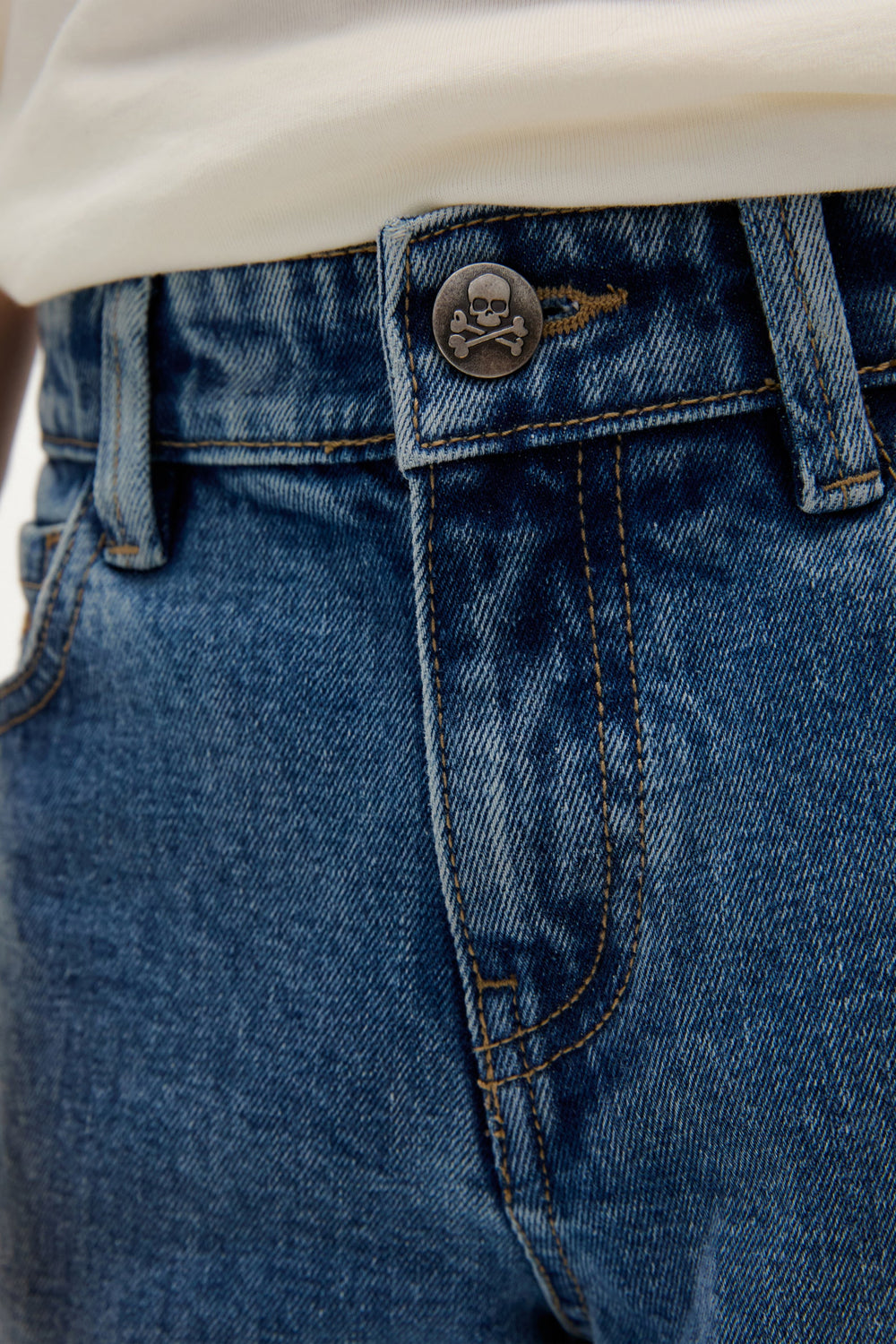 Jeans made of cotton. Regular Fit. Front and back pockets. Button and zip fastening. Belt loops at the waist. Skull detail on button and logo label on back pocket.