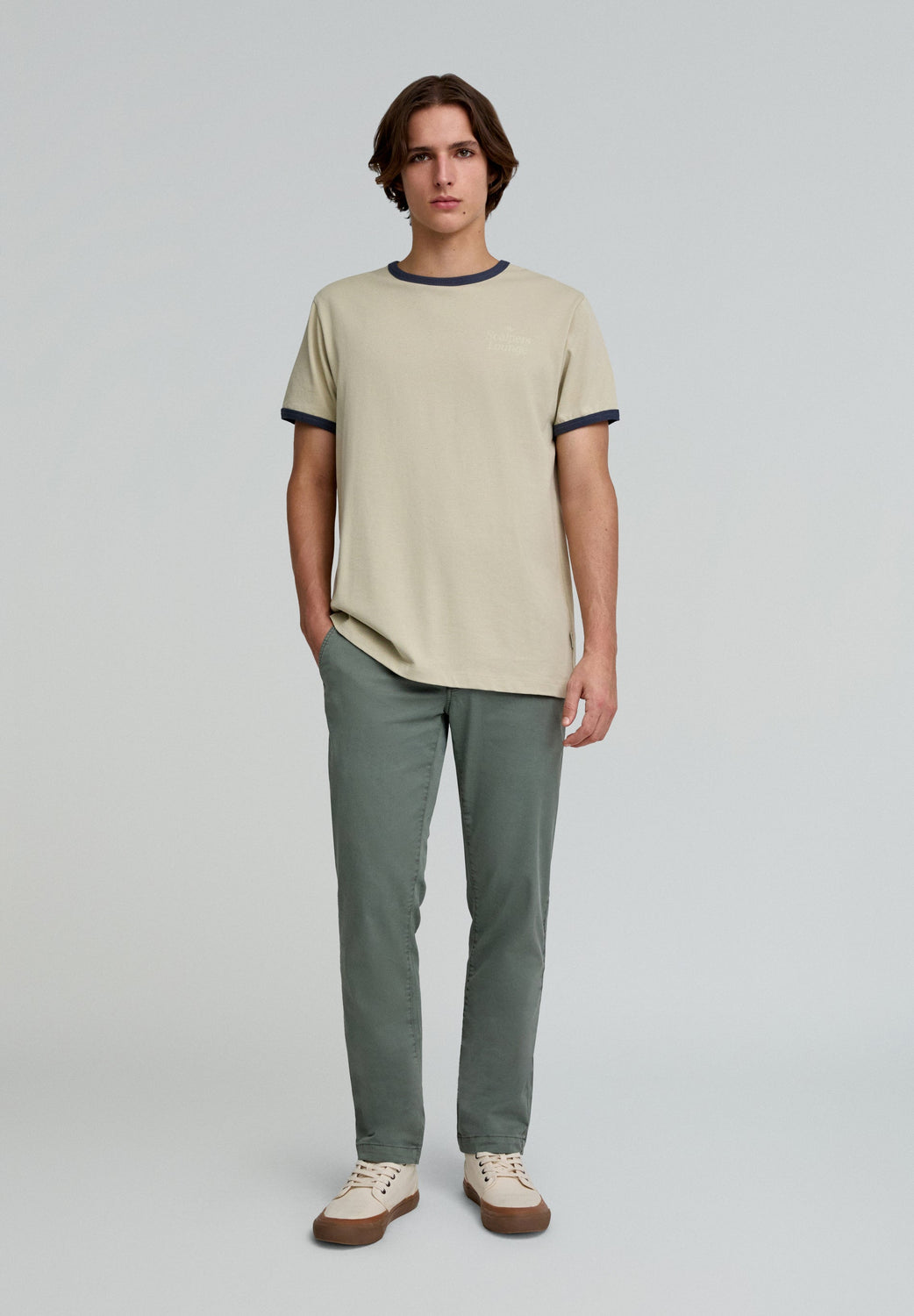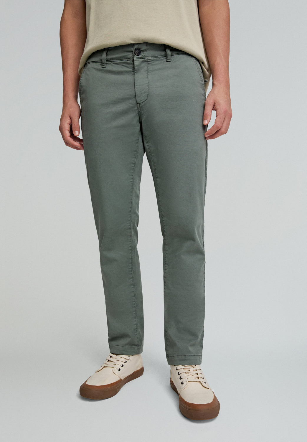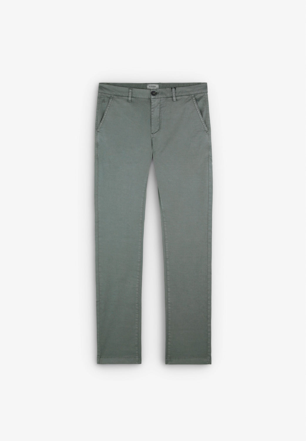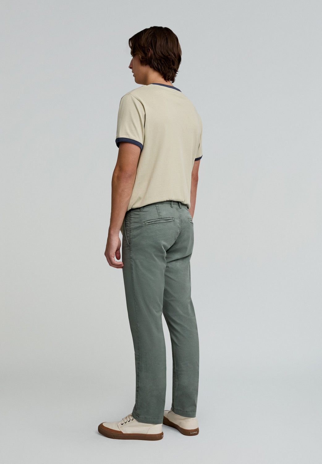 Pantalón chino casual confeccionado en mezcla de algodón ligeramente elástico. Cierre con botón y cremallera y bolsillos laterales y traseros. Trabillas en cintura.