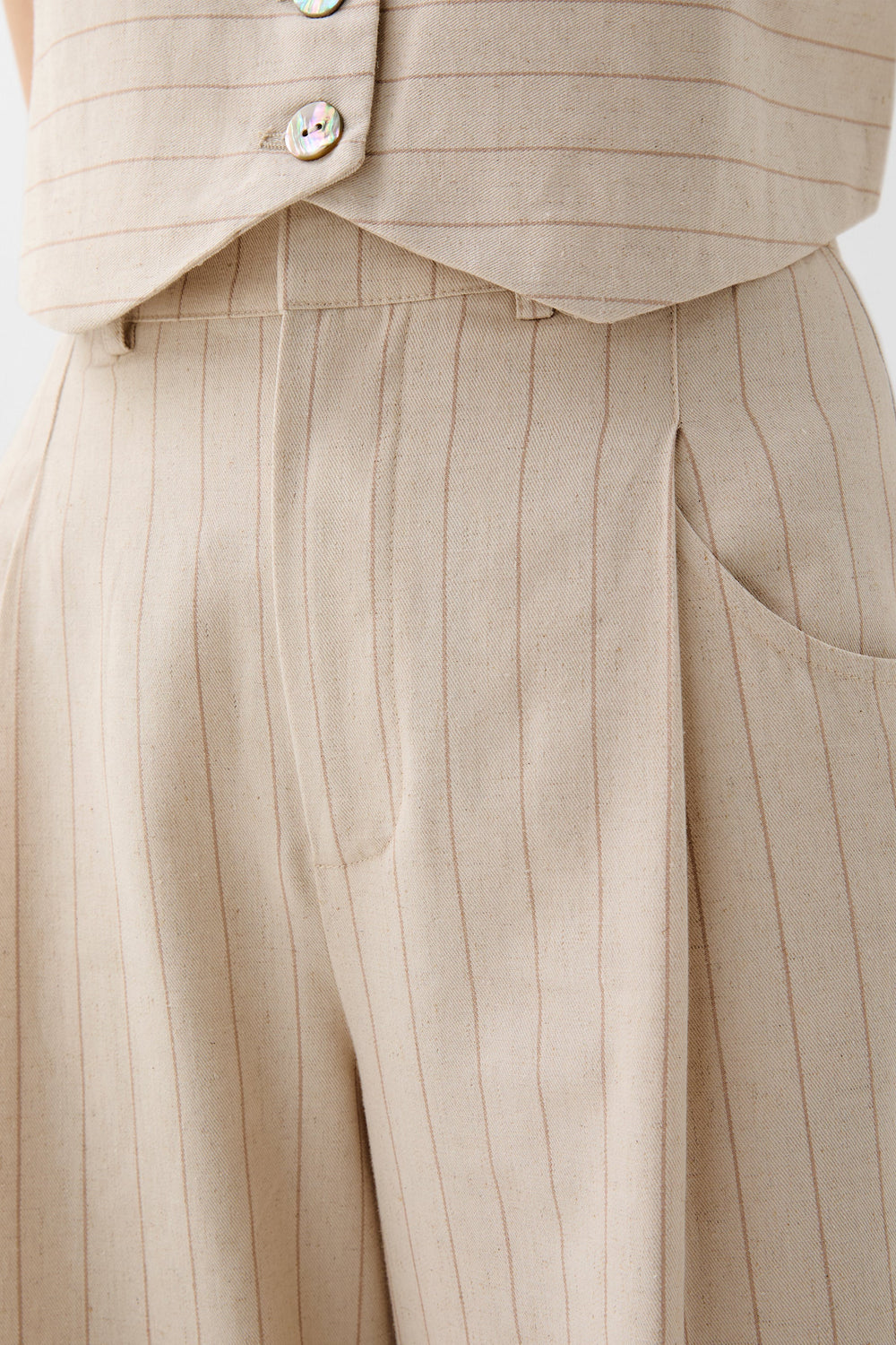 STRIPED TROUSERS WITH DARTS AND POCKETS
