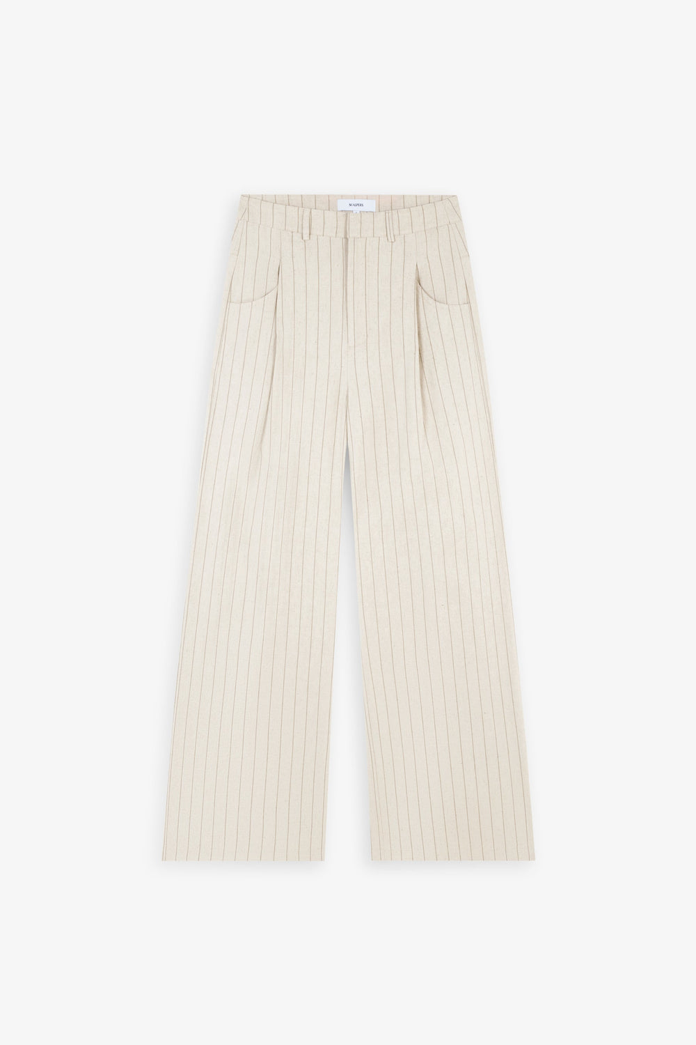 Striped darted trousers made of a cotton and linen blend. Regular fit, full length and zip and button fastening with extended waistband. Slant pockets and back patch pockets.