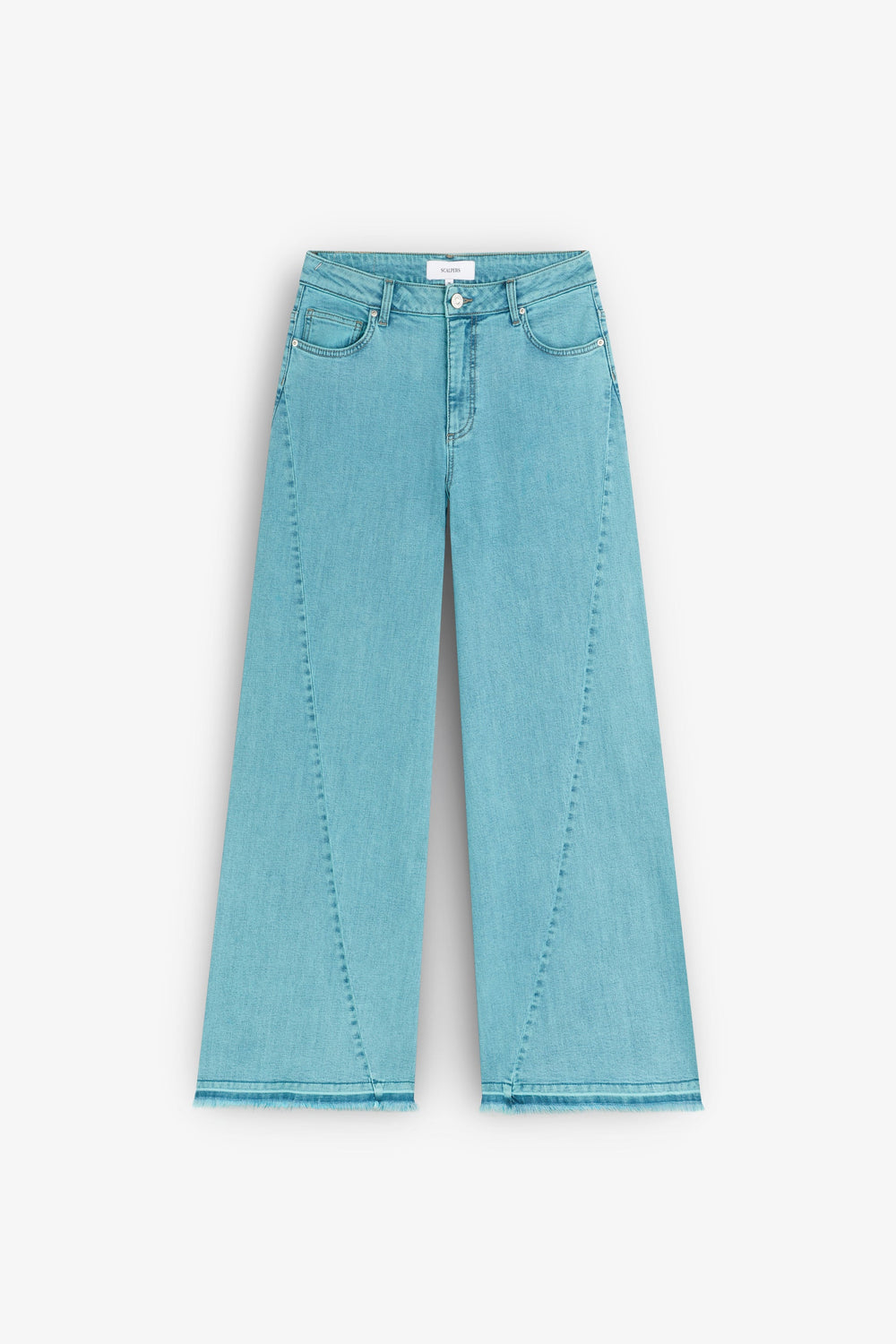 Jeans made of cotton. Regular fit, culotte style, faded. Zip and button fastening. Front slant pockets and back patch pockets Frayed hems.